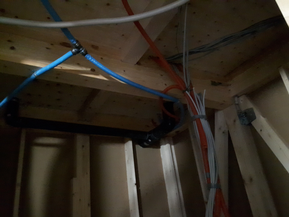 本日、設備配管・電気配線を行いました。
