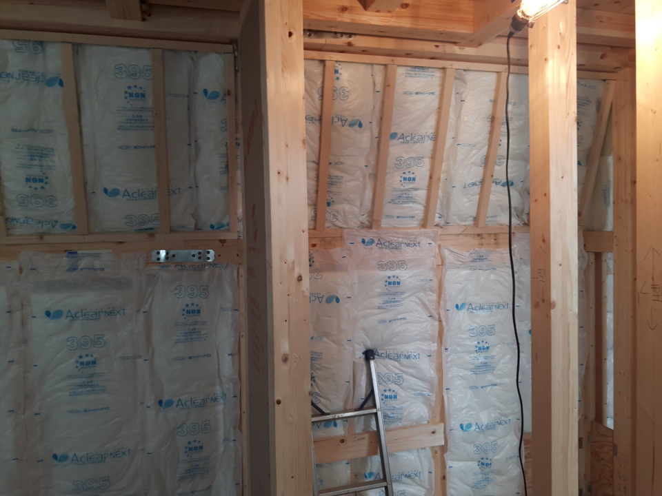 次工程として、断熱材 ⇒ 石膏ボードの施工へと進みます。