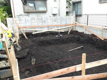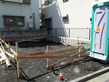 基礎工事着工前に材木を使用した囲いを作ることです。