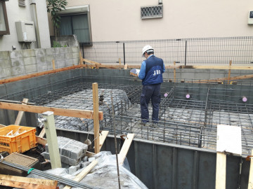 基礎配筋が完了した時点で、第三者機関によるチェックを受けます。