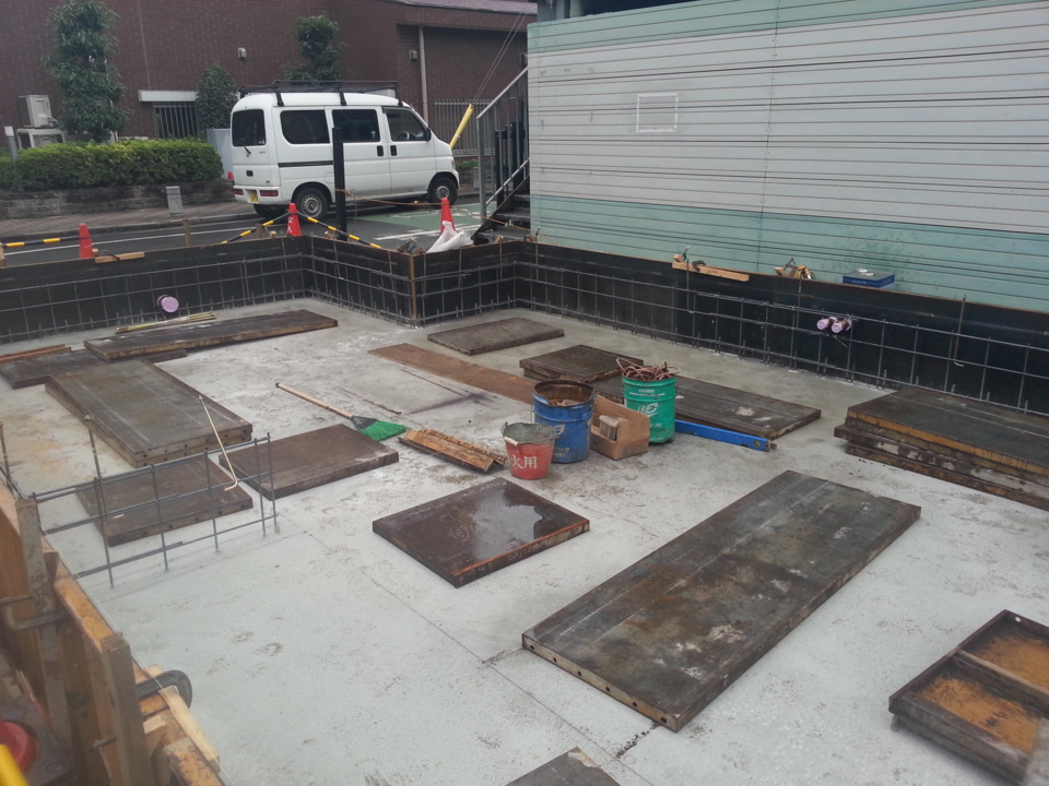 打設後に若干雨が降ってきましたが、影響もなくしっかりとした耐圧盤施工ができました。
