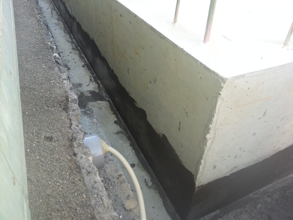 今回は室内の床面が外部の地盤面より低くなりますので、水の進入を防ぐための防水処置です。