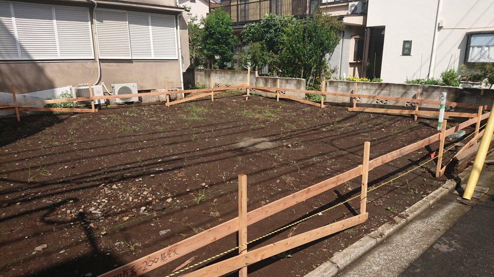敷地に対する建物(基礎)の配置、基礎の高さ・直角・幅等の基礎工事業者が必要とする情報を明確にする囲いの様なものです。