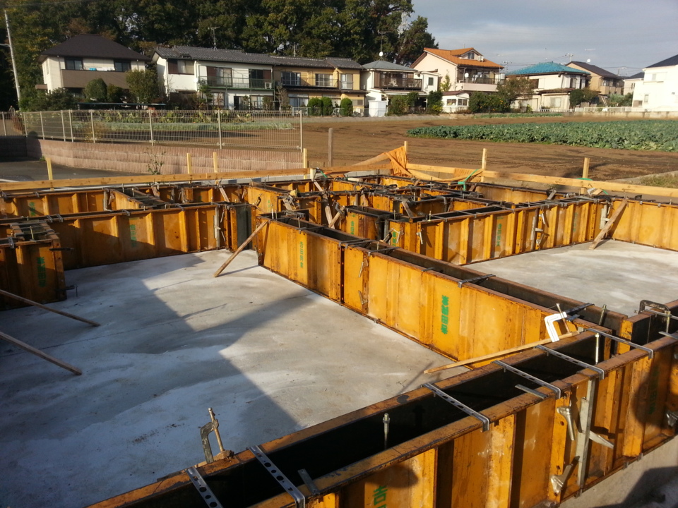 基礎工事:立ち上がり部分のコンクリート打設を準備しています。
