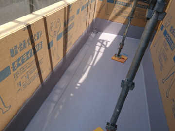 バルコニーの下地が完了し、仕上げの防水工事を行いました。