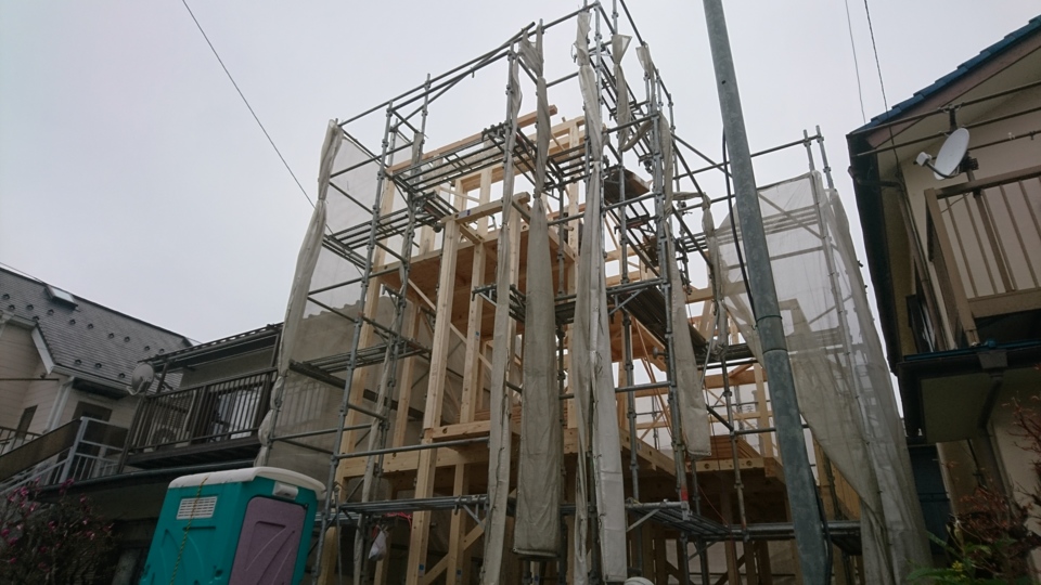 上棟後から足場に隠されていた建物が姿を現しました。