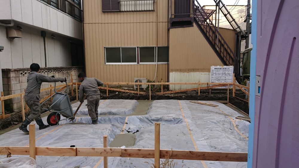 問題なく合格しましたので、耐圧コンクリートを打つ工程に進みます。
