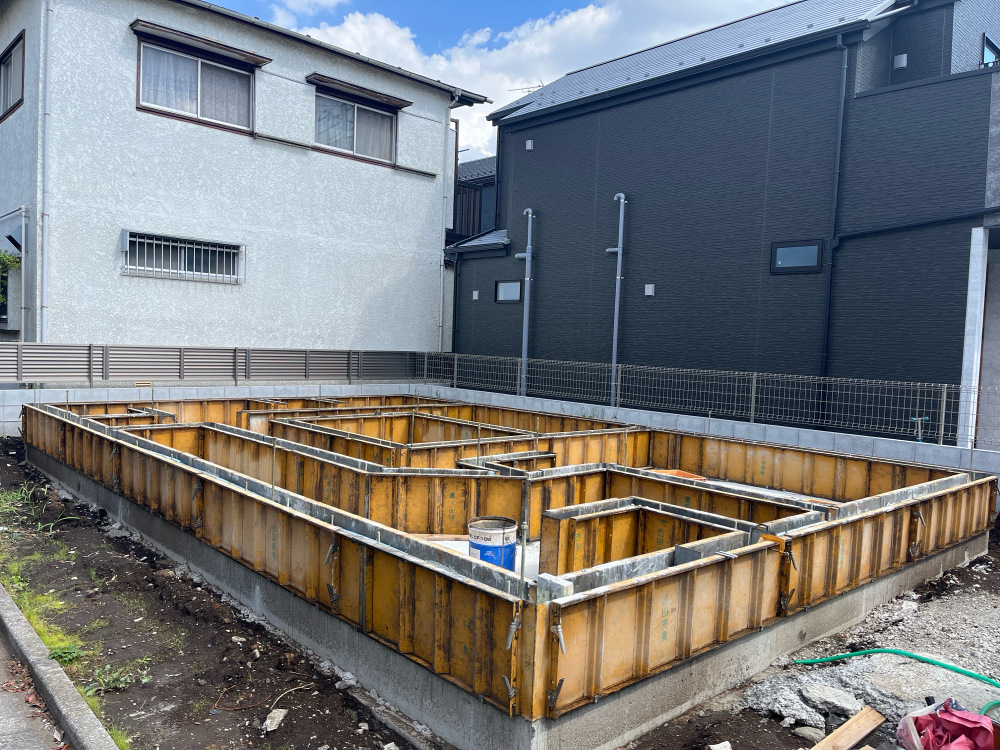 この部分のコンクリートの乾燥(養生)を待ち、今度は立ち上がり部分の生コン打設のための枠組みに移行いたします。