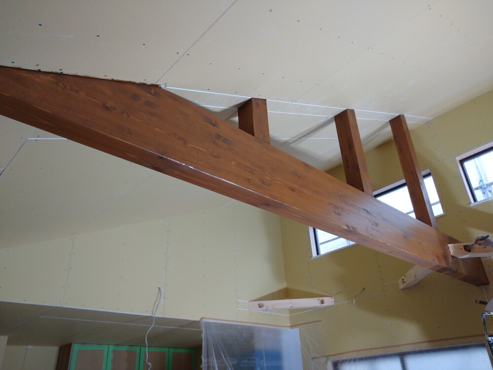 化粧梁に色付け塗装です。