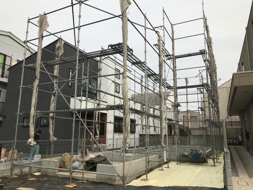上棟に先立ち、足場の設置が完了しました。