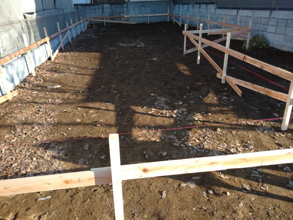 遣り方 基礎工事が着工する前の【遣り方】を施工しました。