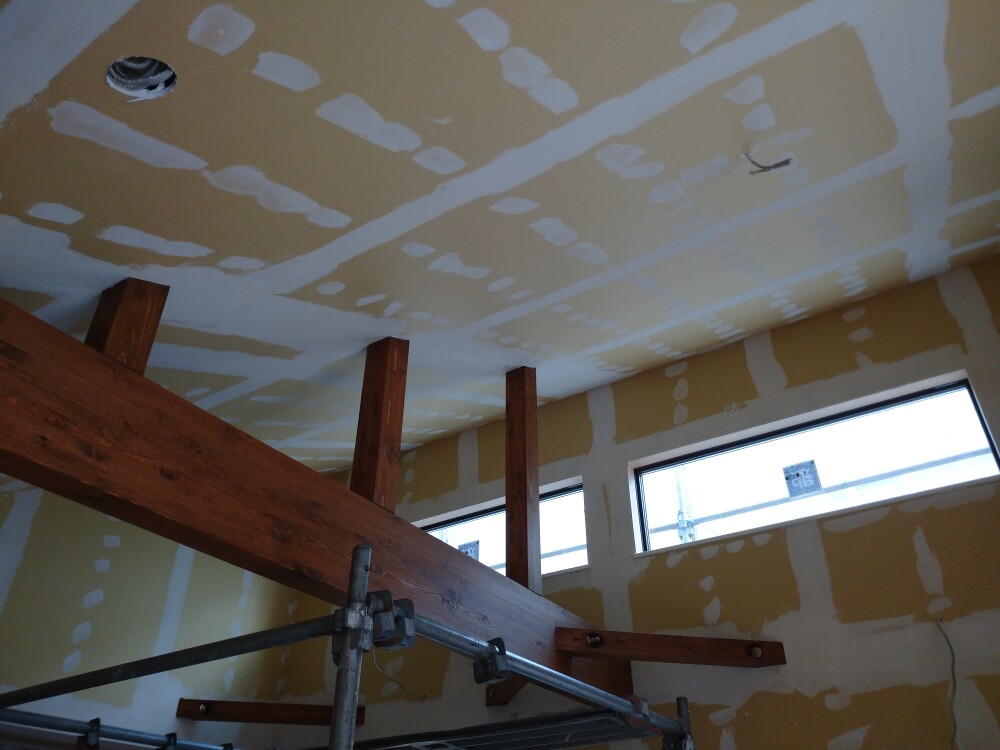 石膏ボードの繋ぎ目の部分にパテを埋めて