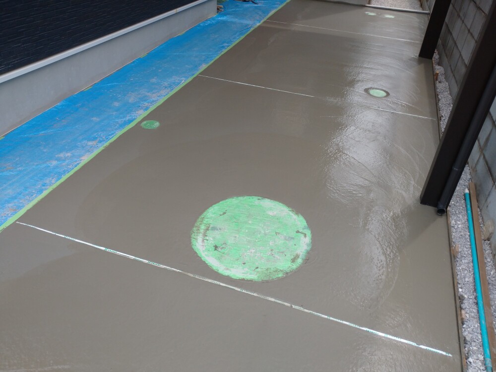 転圧後、指定の部分に捨てコンクリートを打設します。