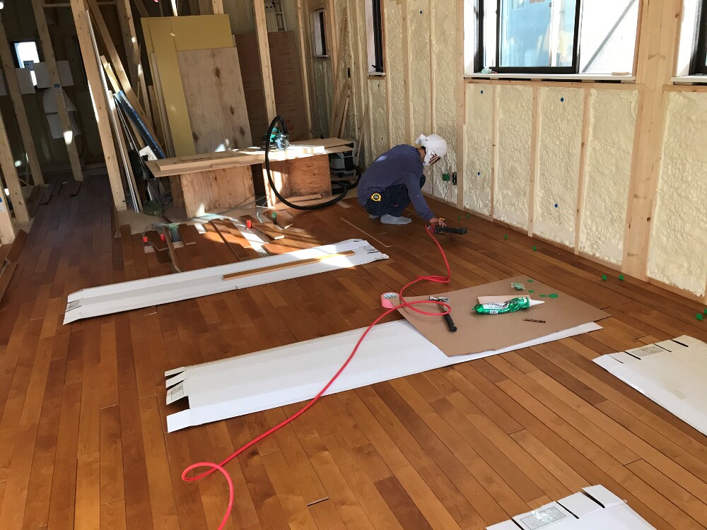 フローリング施工中