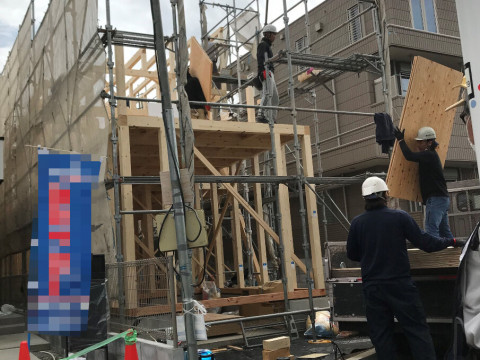 写真は上棟中の様子です。
