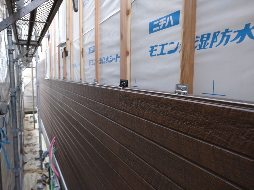 サイディング板張りが始まっています。