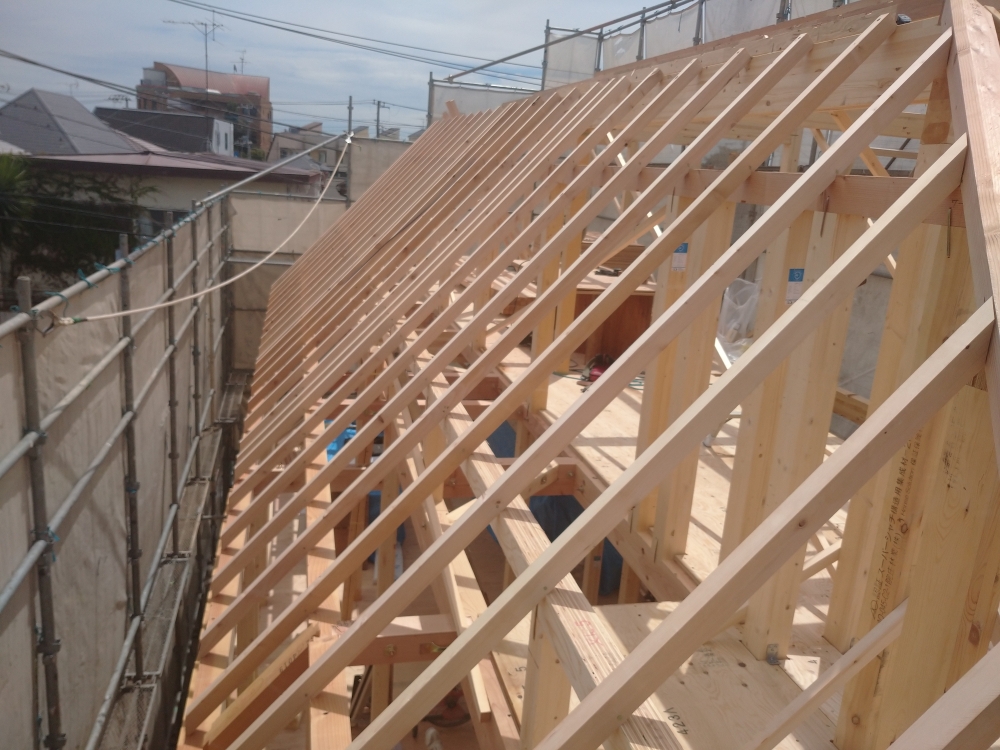 暑さが厳しかったですが、天気にも恵まれ無事上棟できました!