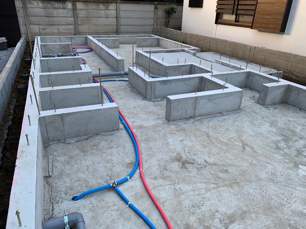 捨コンは鉄筋を配列する前に、掘り進めた地盤面にコンクリートを打設することです。