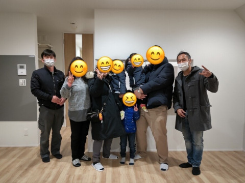 鍵のお引渡し後、家中の設備の使い方などを一通り説明させていただき、最後に皆さまで一緒に記念撮影です。