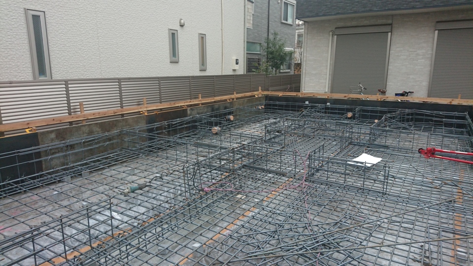 設計士作成の基礎伏図に基づき、配筋を施工していきます。