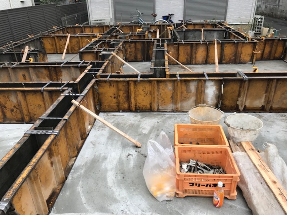 この後はコンクリートが乾燥するのを待ち(養生期間)枠を解体する作業に移ります。