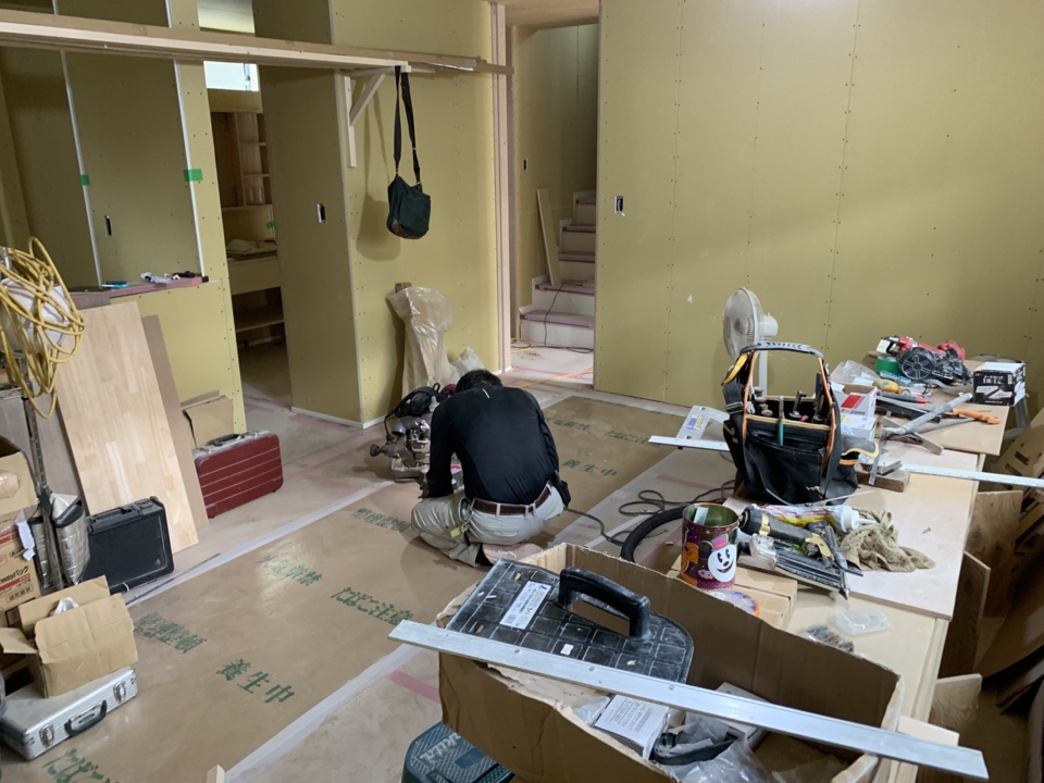 最後の作業としまして、巾木を取り付けて木工事終了。
