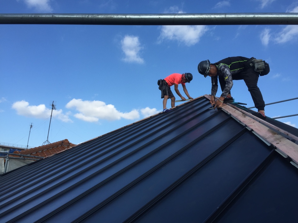 前に施工したルーフィングの上に施工し、これで完全に下部室内への侵入はなくなります。