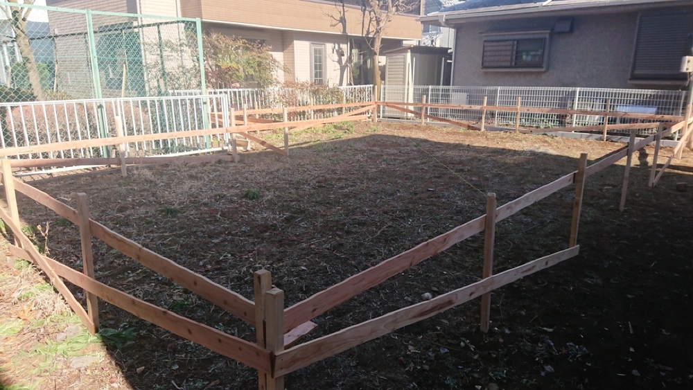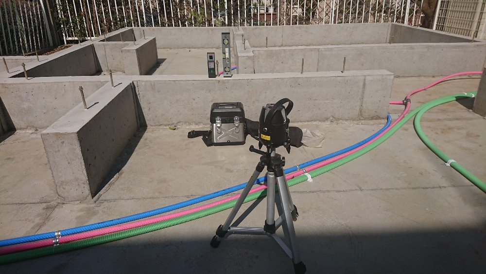 一見ただの囲いに見えますが建物(基礎)の敷地に対する配置や基礎の高さ、直角、巾などの情報がわかるように施工したとても重要な工程です。