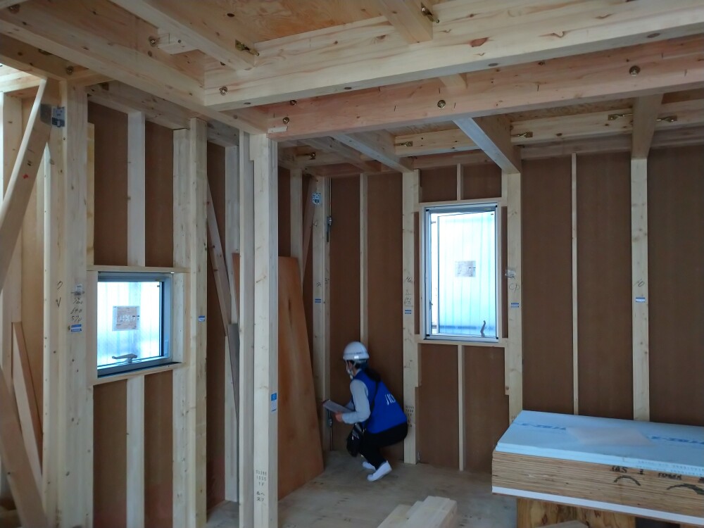 図面通りに金物がついているか、耐力壁の位置・釘のピッチ等、構造耐力のチェックになります。