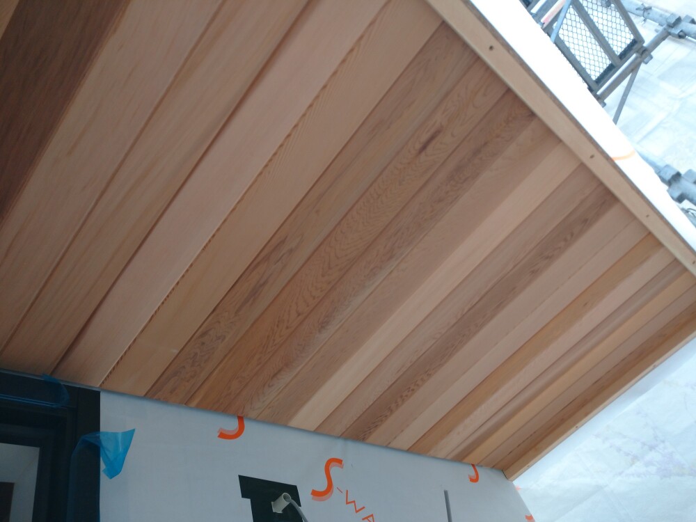 玄関ドア上部の軒天です。