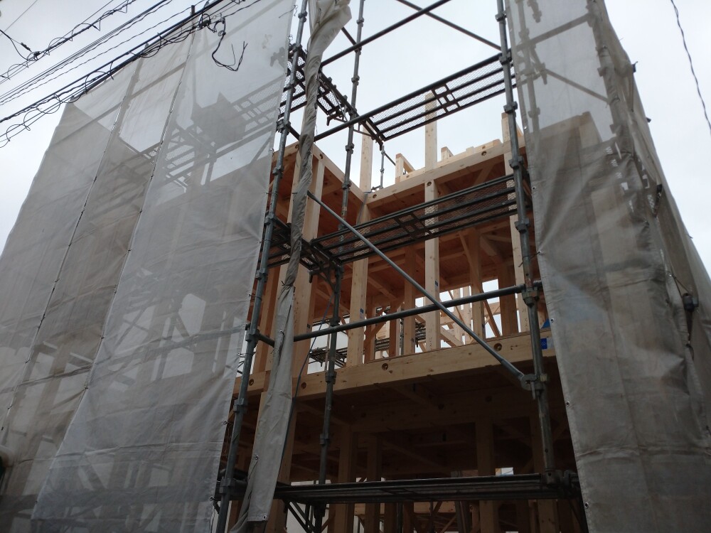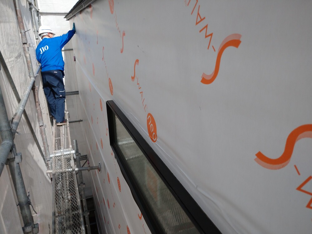 透湿シートの施工をし、外装下地検査を受けました。