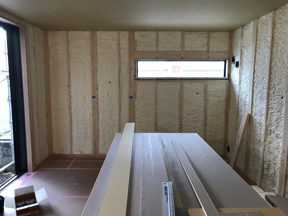 引き続き木工事中です。断熱施工が完了しています。
