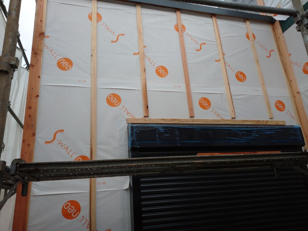 透湿シートの施工を行いました。