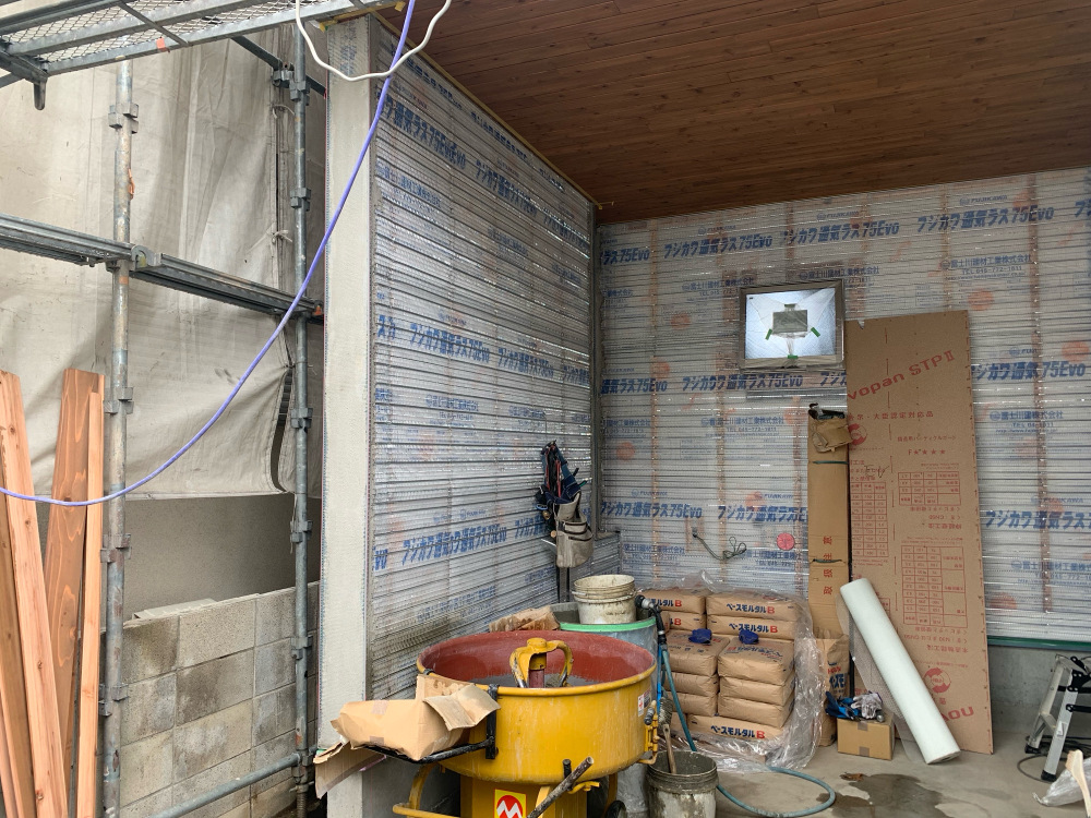 仕上げの外壁材と壁との間に通気用の空間をあけるために取り付けられます。
