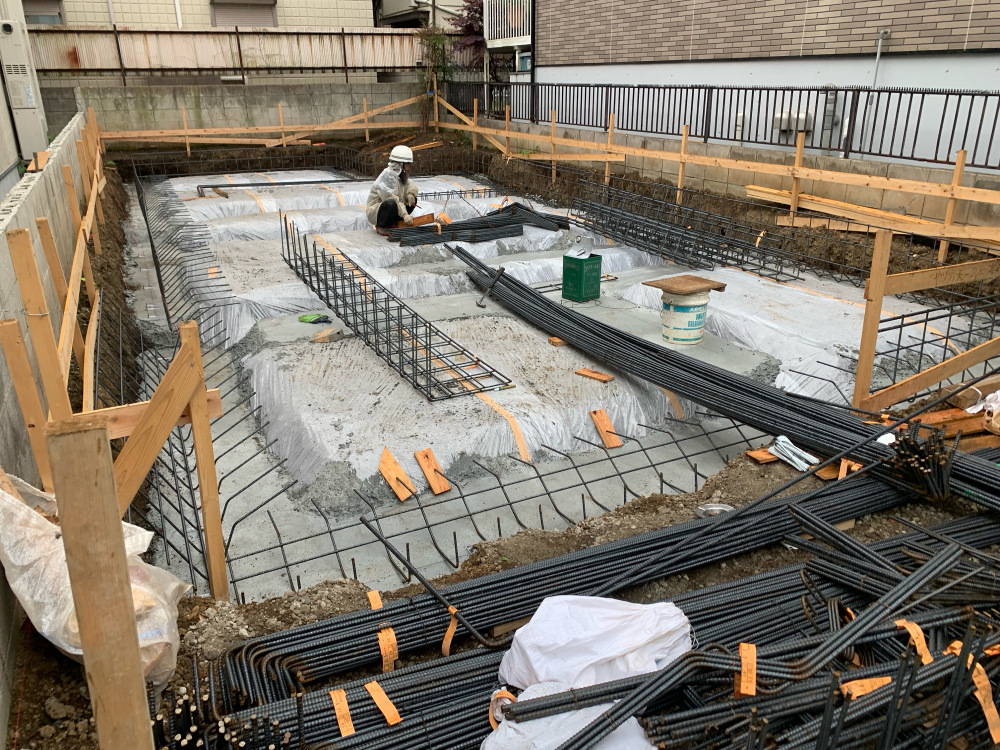 鉄筋の太さから始まり、配筋ピッチ、配筋長さ等が基礎伏図に記載されており、その通りに施工してもらい配筋検査を受ける準備となります。