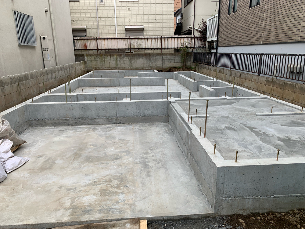 この後、基礎の高さが正しいかレベルチェックを行います。