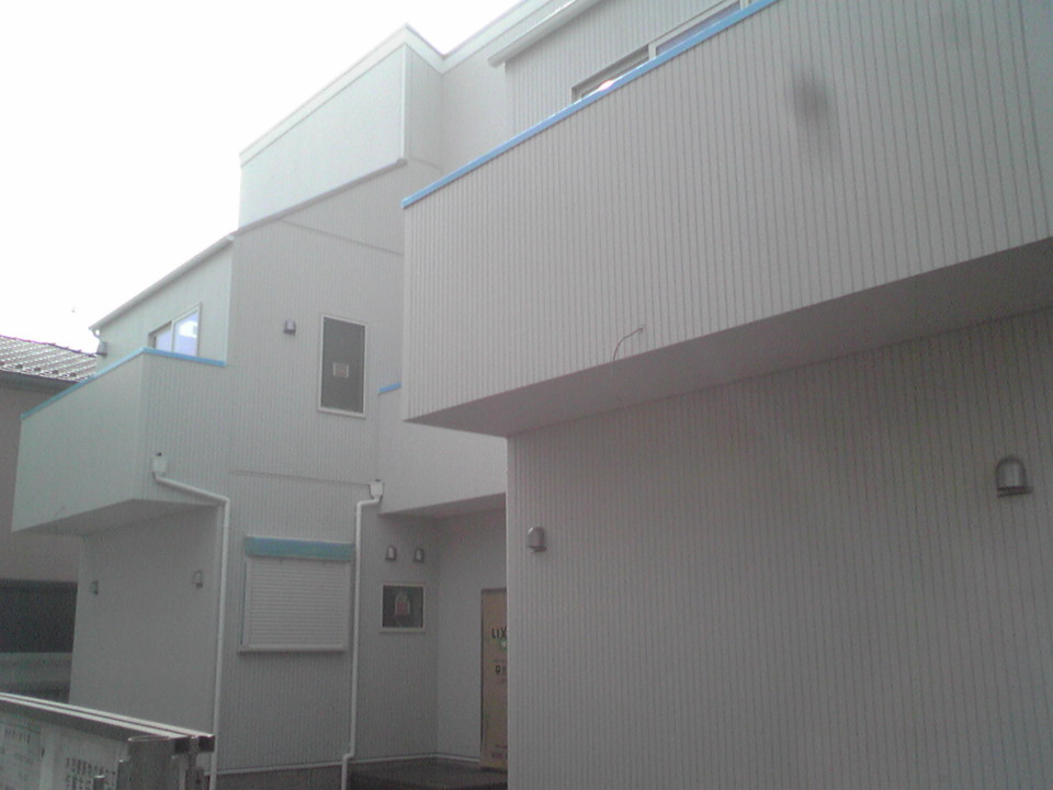 ガルバリウムのようなシャープなデザインがかっこいいですね。サイディング施工が終わり、足場が取れると、いよいよお家全体がみえてきます。