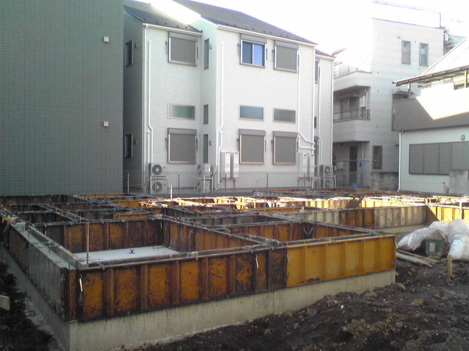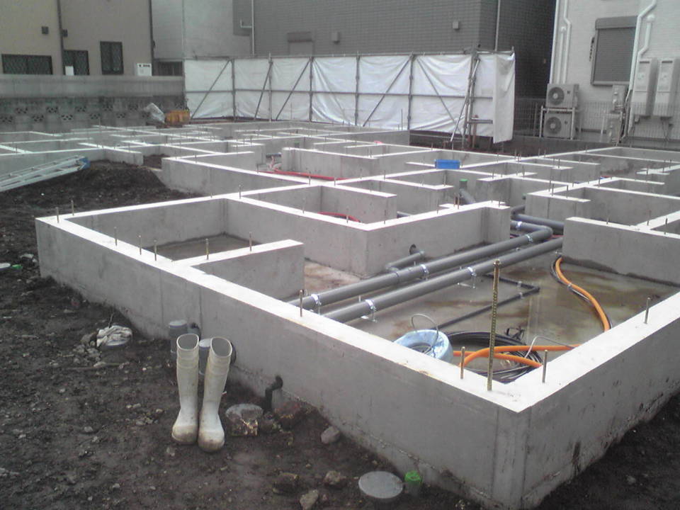 基礎工事・先行の給排水工事が完了しました。