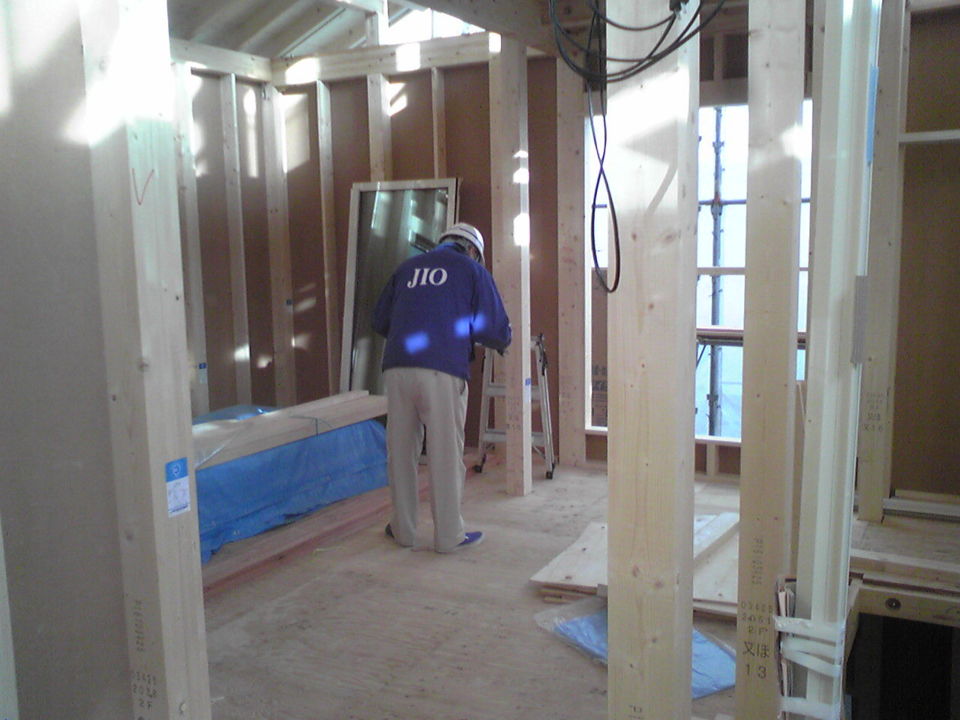 断熱材施工中。