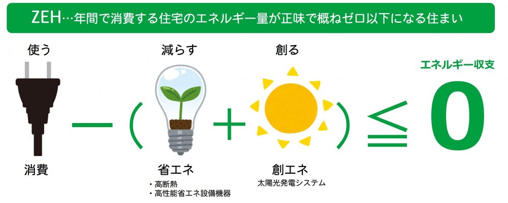 2014年4月の閣議決定による「エネルギー基本計画」において、「住宅については、2020年までに標準的な新築住宅で2030年までに新築住宅の平均で住宅の年間の一次エネルギー消費量が正味(ネット)でゼロとなる住宅(以下、「ZEH」という)を目指す」とする政策目標が設定されました。