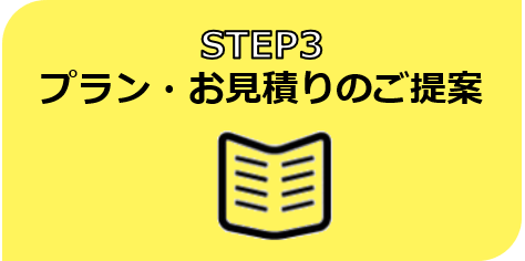 STEP3 プラン・お見積りのご提案ここまでお聞かせいただいたお客様のご要望・現地調査の結果などを基に、お客様にとって最適なプラン・お見積りをご提案させていただきます。 |