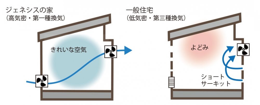 ジェネシスでは給気・排気ともに機械で行う「第一種換気システム」を採用。より確実な換気を実現しています。