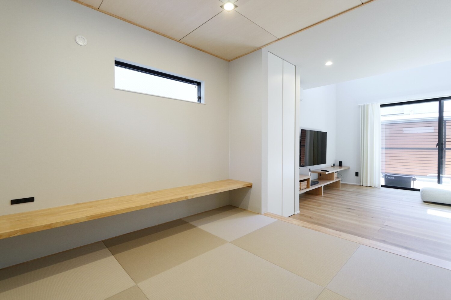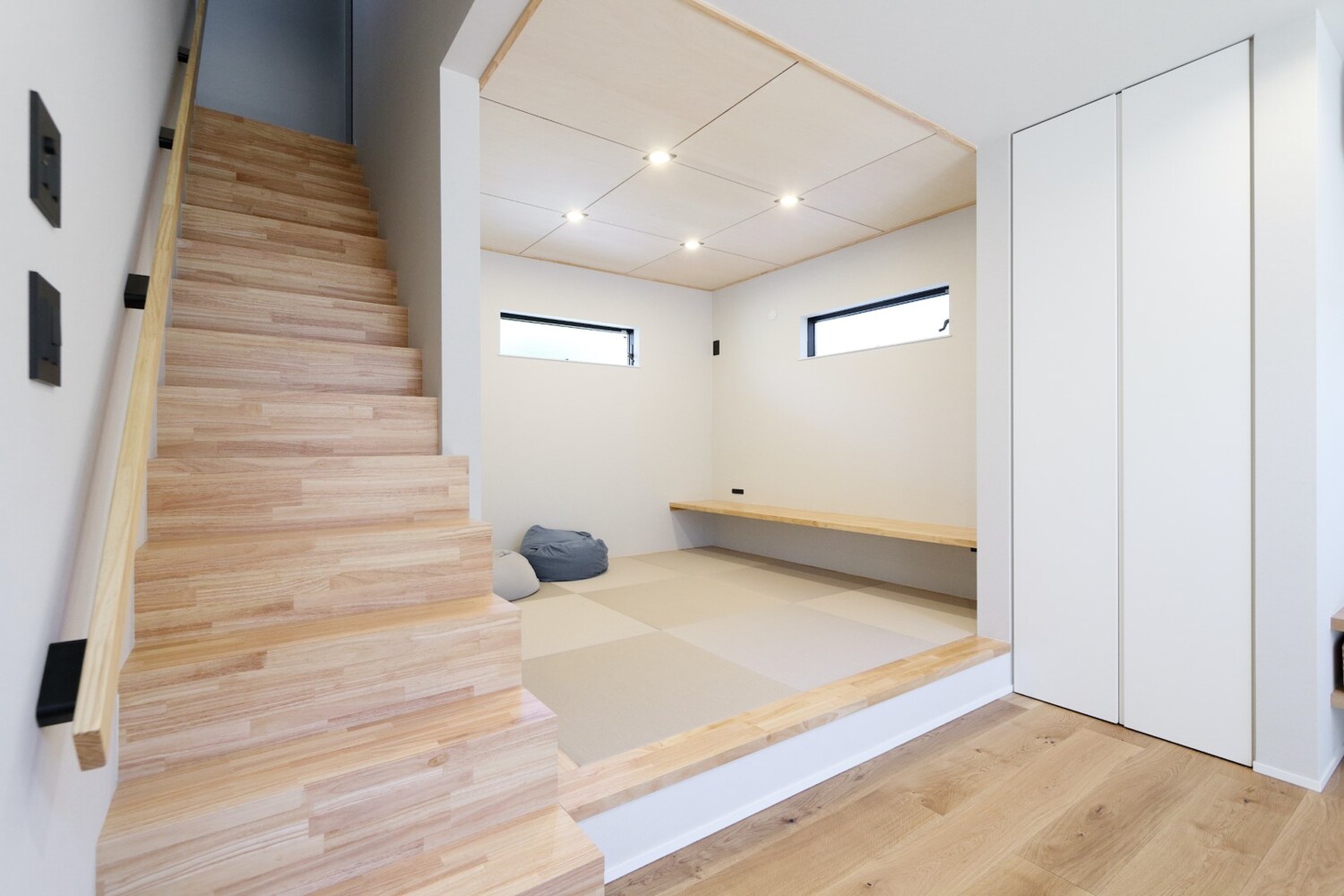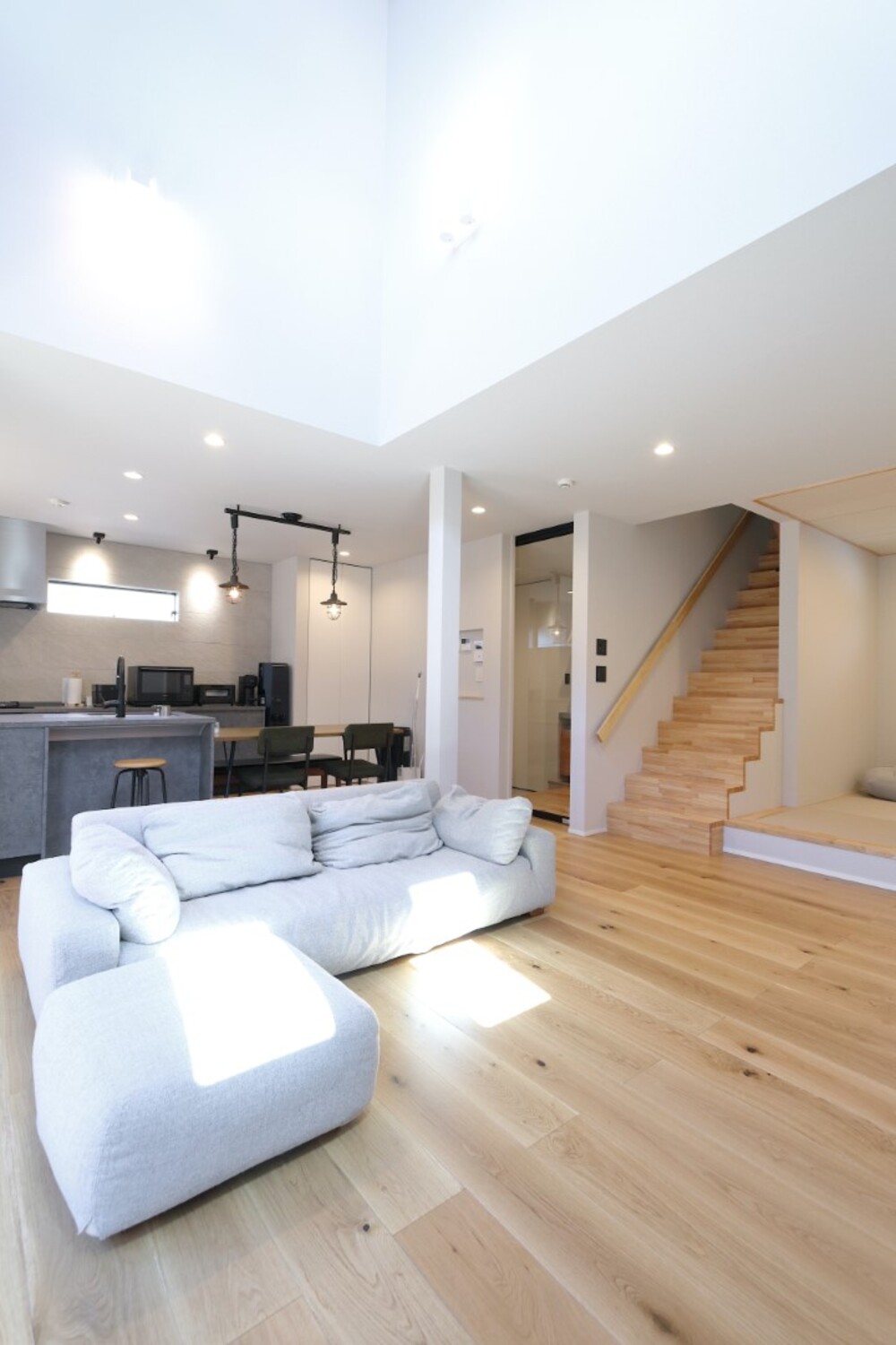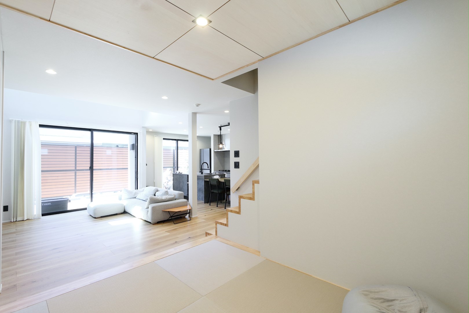 ホーム 施工事例 全ての写真 すべて 間をつなぐ家 間をつなぐ家 杉並区の家 S様邸 全ての写真|すべて 外壁はジョリパット(ゆず肌)のT6013。 グレーと木調の組み合わせは相性抜群です。画像のみを表示全 16 枚中 1 枚目を表示Next ≫ 玄関の軒天にはレッドシダーの羽目板を施しました。 経年変化を楽しめるレッドシダーはとても人気を集めています。画像のみを表示全 16 枚中 2 枚目を表示≪ Prev|Next ≫ 玄関入ってすぐには、造作の洗面台。 モールテックスの造作家具などを得意とするアンプインテリアデザインさんによる造作家具です。 木とモールテックスの相性抜群です。画像のみを表示全 16 枚中 3 枚目を表示≪ Prev|Next ≫ ボウルと水栓は、サンワカンパニーのものを取り付けています。 ボウル:テオレマスリム500 水栓:ニューベガトール混合水栓画像のみを表示全 16 枚中 4 枚目を表示≪ Prev|Next ≫ 日当たりの良いLDKは、吹き抜けもあり開放感抜群です。 LDK入口のドアはガラスドア(YKK/ファミット)にしており、玄関まで視界が抜けるようになっています。画像のみを表示全 16 枚中 5 枚目を表示≪ Prev|Next ≫ こちらのテレビボードも、玄関手洗の造作を手掛けたアンプインテリアデザインさんの施工です。画像のみを表示全 16 枚中 6 枚目を表示≪ Prev|Next ≫ リビングは吹き抜けになっており、窓からたくさんの光が差し込んできます。 天井はレッドシダーの羽目板を貼っており、バルコニーの軒天まで続いています。画像のみを表示全 16 枚中 7 枚目を表示≪ Prev|Next ≫ 床材は、IOCのカンヌコムサです。 木のぬくもりが感じられます。画像のみを表示全 16 枚中 8 枚目を表示≪ Prev|Next ≫ 小上がりで畳コーナーを設けました。 畳はダイケンの「灰桜」というカラーを採用しています。 天井の羽目板を畳の大きさに合わせているところも、こだわりポイントです。 キッチンからも目線が行き届き、お子様が遊んでいても安心です。画像のみを表示全 16 枚中 9 枚目を表示≪ Prev|Next ≫ 畳コーナーにはカウンターを設け、お子様が勉強をしたりするすぺーすとして活用しています。画像のみを表示全 16 枚中 10 枚目を表示≪ Prev|Next ≫ こだわりのキッチンはタカラスタンダード。 Ⅱ型のキッチンにすることで、LDKを廻廊することができ利便性に優れています。画像のみを表示全 16 枚中 11 枚目を表示≪ Prev|Next ≫ 背面のカップボードの横にウォーターサーバーを入れるために、あらかじめ寸法を考慮して設計しました。 ぴったりと納まっていますね。画像のみを表示全 16 枚中 12 枚目を表示≪ Prev|Next ≫ キッチンからの眺め。 とても開放感があります。画像のみを表示全 16 枚中 13 枚目を表示≪ Prev|Next ≫ 洗面台は、朝の忙しい時間帯でも横並びで支度ができるよう、広めに設けました。 ミラーはW750のものとW900のものを組み合わせています。画像のみを表示全 16 枚中 14 枚目を表示≪ Prev|Next ≫ ヤマシタの階段。鼻の出を0㎜にすることで、スタイリッシュな印象を与えてくれます。 手すりはWOODONEのボードレールです。 画像のみを表示全 16 枚中 15 枚目を表示≪ Prev|Next ≫ 広々としたウッドデッキ。 普段からキャンプによく行くお施主様ご一家。 このウッドデッキでBBQも楽しめそうですね。画像のみを表示全 16 枚中 16 枚目を表示≪ Prev 工 法:木造軸組構法 延床面積:114.29㎡(34.57坪) 本体価格:2,170万円 別途費用:1,020万円 設計費用:110万円 外構費用:別途 合 計:3,300万円 ※表示は全て税込です。 こちらのお住まいが完成するまでの建築レポートはこちら お客様の声はこちら ▽▼もっと事例が見たい方におすすめ▽▼ ホームページには公開されていない写真や間取りを多数掲載!実例集や家づくりについての小冊子、ニュースレターなどがセットになった人気のカタログセット無料プレゼント実施中♪ ▼▼無理な勧誘は行っておりません。お気軽にご参加ください▼▼ ▼▼大好評!オンライン相談も受付中▼▼ 一覧へ戻る 全ての写真 タイプ別 広さ別(延床面積) パーツ別 テイスト別 SUUMO掲載中 すべて SE構法 狭小地・変形地に建てた家 2階建て 3階建て 東京ゼロエミ住宅 二世帯・共同住宅 リフォーム・リノベーション 20坪未満 20坪以上25坪未満 25坪以上30坪未満 30坪以上 すべて キッチン リビング 室内ドア・建具 洗面・トイレ 玄関まわり 階段 フローリング 外観 和室・畳コーナー シンプルモダン シンプルナチュラル スタイリッシュモダン インダストリアル 和風モダン すべて