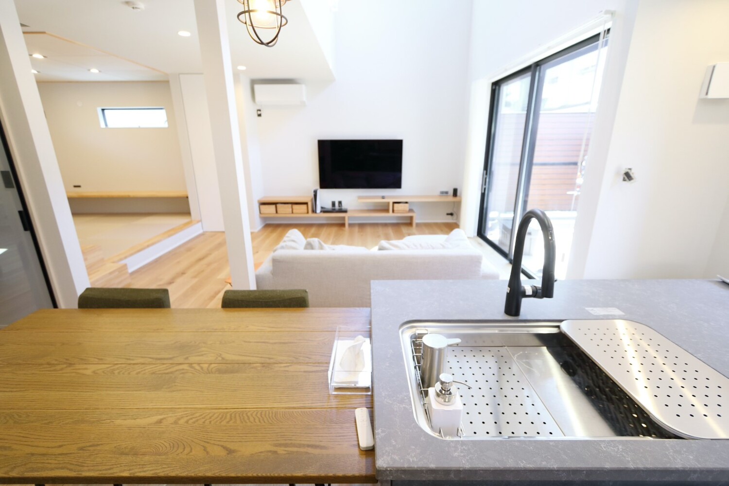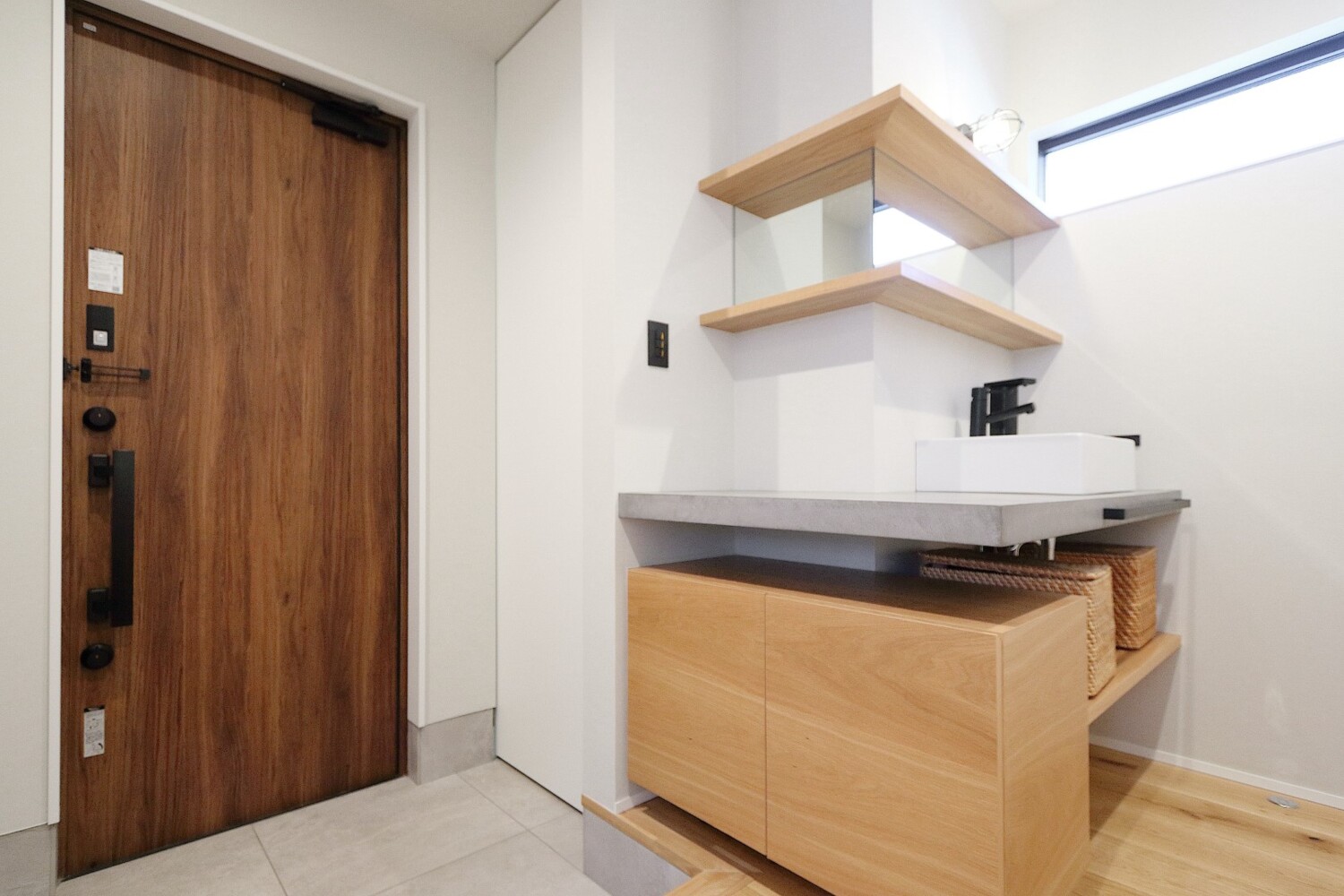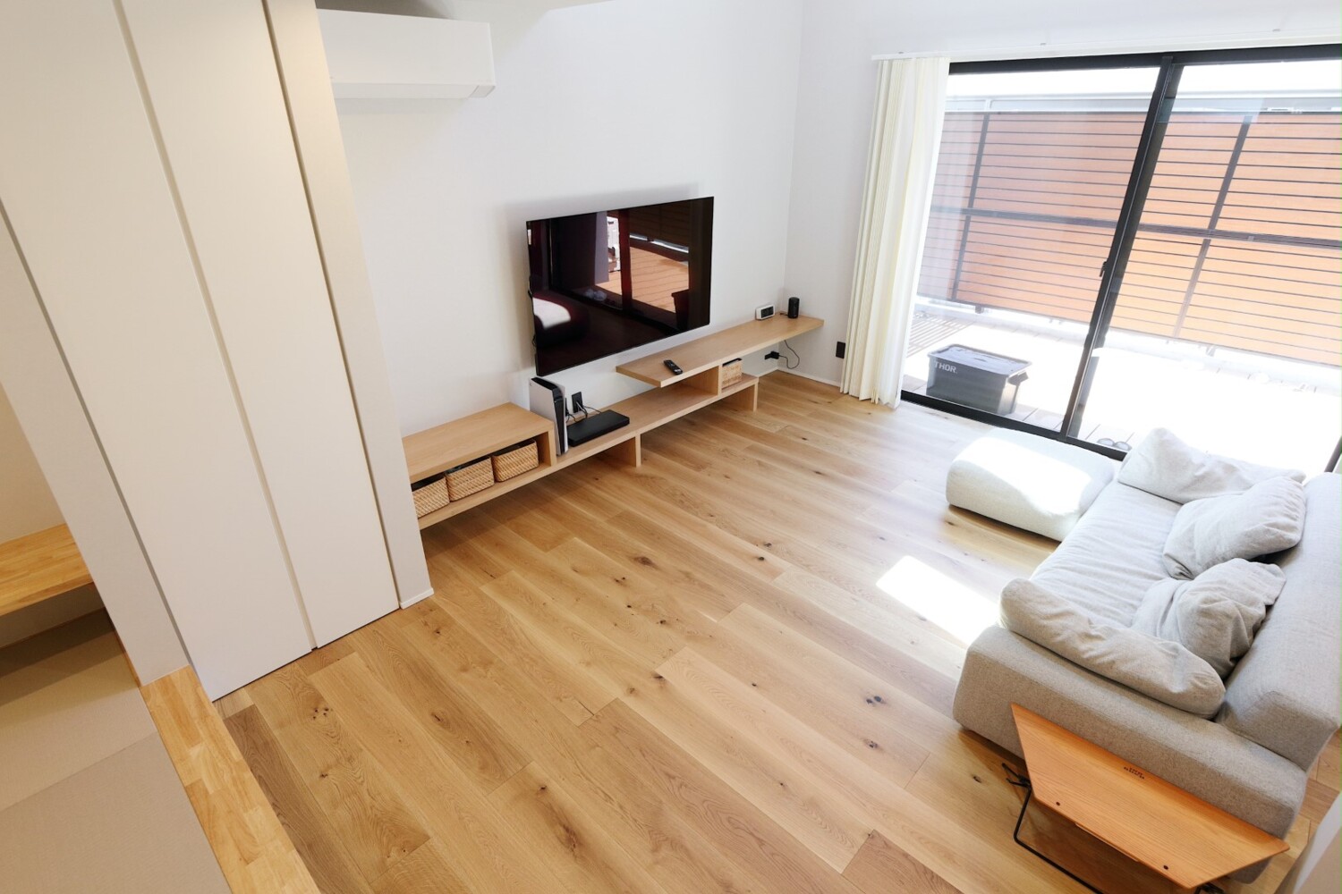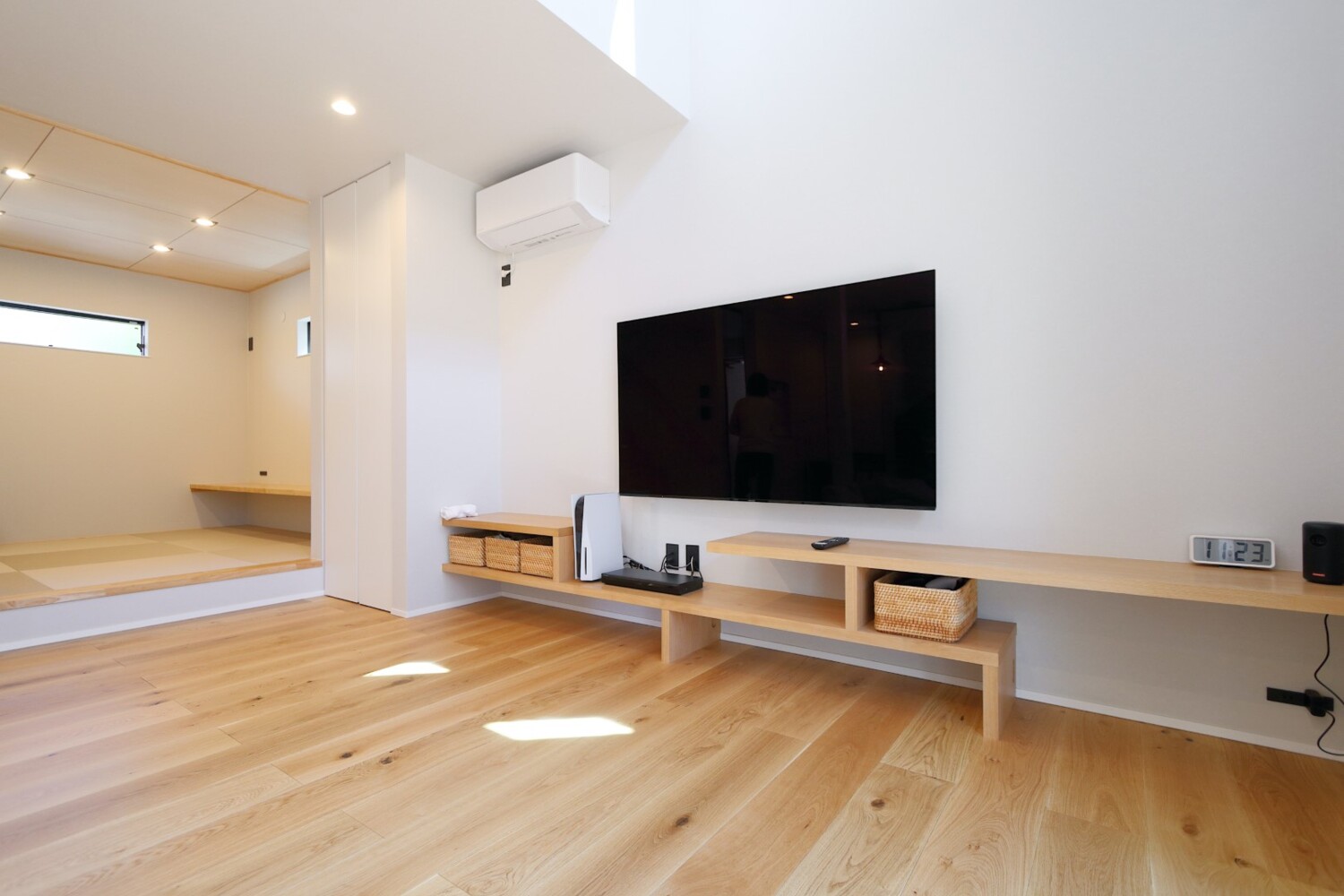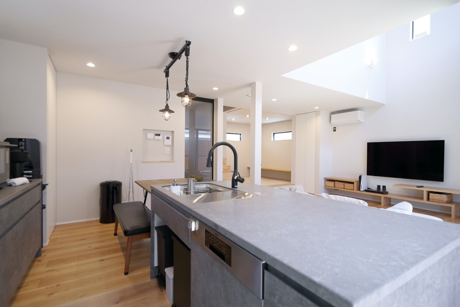 ホーム 施工事例 全ての写真 すべて 間をつなぐ家 間をつなぐ家 杉並区の家 S様邸 全ての写真|すべて 外壁はジョリパット(ゆず肌)のT6013。 グレーと木調の組み合わせは相性抜群です。画像のみを表示全 16 枚中 1 枚目を表示Next ≫ 玄関の軒天にはレッドシダーの羽目板を施しました。 経年変化を楽しめるレッドシダーはとても人気を集めています。画像のみを表示全 16 枚中 2 枚目を表示≪ Prev|Next ≫ 玄関入ってすぐには、造作の洗面台。 モールテックスの造作家具などを得意とするアンプインテリアデザインさんによる造作家具です。 木とモールテックスの相性抜群です。画像のみを表示全 16 枚中 3 枚目を表示≪ Prev|Next ≫ ボウルと水栓は、サンワカンパニーのものを取り付けています。 ボウル:テオレマスリム500 水栓:ニューベガトール混合水栓画像のみを表示全 16 枚中 4 枚目を表示≪ Prev|Next ≫ 日当たりの良いLDKは、吹き抜けもあり開放感抜群です。 LDK入口のドアはガラスドア(YKK/ファミット)にしており、玄関まで視界が抜けるようになっています。画像のみを表示全 16 枚中 5 枚目を表示≪ Prev|Next ≫ こちらのテレビボードも、玄関手洗の造作を手掛けたアンプインテリアデザインさんの施工です。画像のみを表示全 16 枚中 6 枚目を表示≪ Prev|Next ≫ リビングは吹き抜けになっており、窓からたくさんの光が差し込んできます。 天井はレッドシダーの羽目板を貼っており、バルコニーの軒天まで続いています。画像のみを表示全 16 枚中 7 枚目を表示≪ Prev|Next ≫ 床材は、IOCのカンヌコムサです。 木のぬくもりが感じられます。画像のみを表示全 16 枚中 8 枚目を表示≪ Prev|Next ≫ 小上がりで畳コーナーを設けました。 畳はダイケンの「灰桜」というカラーを採用しています。 天井の羽目板を畳の大きさに合わせているところも、こだわりポイントです。 キッチンからも目線が行き届き、お子様が遊んでいても安心です。画像のみを表示全 16 枚中 9 枚目を表示≪ Prev|Next ≫ 畳コーナーにはカウンターを設け、お子様が勉強をしたりするすぺーすとして活用しています。画像のみを表示全 16 枚中 10 枚目を表示≪ Prev|Next ≫ こだわりのキッチンはタカラスタンダード。 Ⅱ型のキッチンにすることで、LDKを廻廊することができ利便性に優れています。画像のみを表示全 16 枚中 11 枚目を表示≪ Prev|Next ≫ 背面のカップボードの横にウォーターサーバーを入れるために、あらかじめ寸法を考慮して設計しました。 ぴったりと納まっていますね。画像のみを表示全 16 枚中 12 枚目を表示≪ Prev|Next ≫ キッチンからの眺め。 とても開放感があります。画像のみを表示全 16 枚中 13 枚目を表示≪ Prev|Next ≫ 洗面台は、朝の忙しい時間帯でも横並びで支度ができるよう、広めに設けました。 ミラーはW750のものとW900のものを組み合わせています。画像のみを表示全 16 枚中 14 枚目を表示≪ Prev|Next ≫ ヤマシタの階段。鼻の出を0㎜にすることで、スタイリッシュな印象を与えてくれます。 手すりはWOODONEのボードレールです。 画像のみを表示全 16 枚中 15 枚目を表示≪ Prev|Next ≫ 広々としたウッドデッキ。 普段からキャンプによく行くお施主様ご一家。 このウッドデッキでBBQも楽しめそうですね。画像のみを表示全 16 枚中 16 枚目を表示≪ Prev 工 法:木造軸組構法 延床面積:114.29㎡(34.57坪) 本体価格:2,170万円 別途費用:1,020万円 設計費用:110万円 外構費用:別途 合 計:3,300万円 ※表示は全て税込です。 こちらのお住まいが完成するまでの建築レポートはこちら お客様の声はこちら ▽▼もっと事例が見たい方におすすめ▽▼ ホームページには公開されていない写真や間取りを多数掲載!実例集や家づくりについての小冊子、ニュースレターなどがセットになった人気のカタログセット無料プレゼント実施中♪ ▼▼無理な勧誘は行っておりません。お気軽にご参加ください▼▼ ▼▼大好評!オンライン相談も受付中▼▼ 一覧へ戻る 全ての写真 タイプ別 広さ別(延床面積) パーツ別 テイスト別 SUUMO掲載中 すべて SE構法 狭小地・変形地に建てた家 2階建て 3階建て 東京ゼロエミ住宅 二世帯・共同住宅 リフォーム・リノベーション 20坪未満 20坪以上25坪未満 25坪以上30坪未満 30坪以上 すべて キッチン リビング 室内ドア・建具 洗面・トイレ 玄関まわり 階段 フローリング 外観 和室・畳コーナー シンプルモダン シンプルナチュラル スタイリッシュモダン インダストリアル 和風モダン すべて