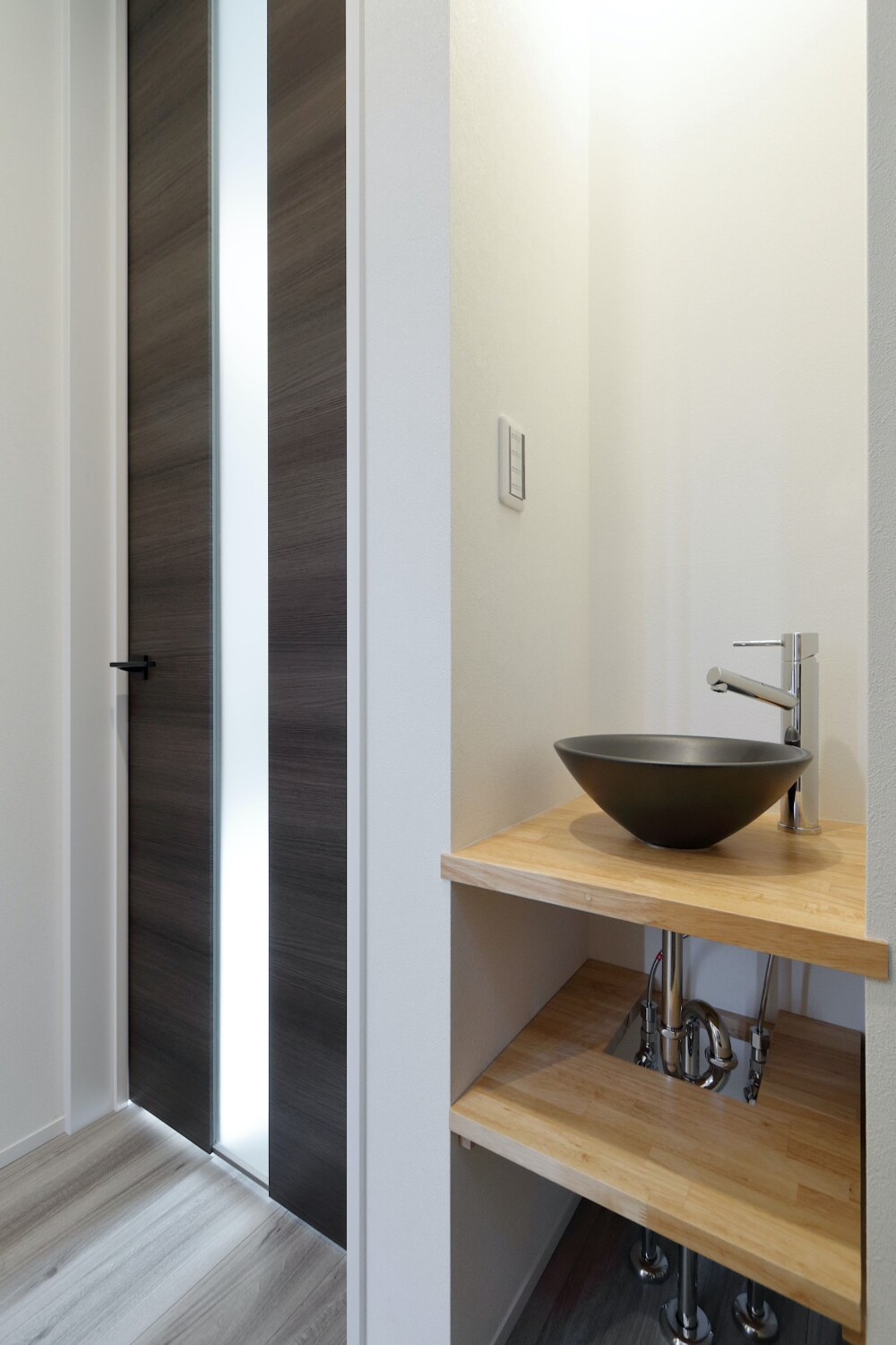 ホーム 施工事例 全ての写真 すべて 太陽光パネル搭載のシンプルでスタイリッシュなゼロエミ住宅 太陽光パネル搭載のシンプルでスタイリッシュなゼロエミ住宅 西東京市の家 S様邸 全ての写真|すべて 外壁はメンテナンスフリーのサイディングで、落ち着いた雰囲気に仕上げました。 外壁:旭トステム外装 SHiZEN オボロチャコール画像のみを表示全 16 枚中 1 枚目を表示Next ≫ 玄関は軒天と玄関ドアの色を揃え、統一感を持たせました。画像のみを表示全 16 枚中 2 枚目を表示≪ Prev|Next ≫ 玄関入ってすぐお帰り洗面台。 ボウルは陶器の質感とブラックのカラーが上品なミラタップのシガラキ ブラックを採用。画像のみを表示全 16 枚中 3 枚目を表示≪ Prev|Next ≫ 玄関収納はレインコートやアウターなどたっぷり収納が可能です。画像のみを表示全 16 枚中 4 枚目を表示≪ Prev|Next ≫ トイレのペーパーはニッチ収納でスッキリまとめました。 クロスはコンクリート調のサンゲツのRE55634。 無機質でスタイリッシュな雰囲気に仕上げています。画像のみを表示全 16 枚中 5 枚目を表示≪ Prev|Next ≫ 洗面化粧台はシンプルで使いやすいLIXILのEV。 サイド収納を設置することで、収納も充分に確保しています。画像のみを表示全 16 枚中 6 枚目を表示≪ Prev|Next ≫ 洗面室クロスはトイレと同じ石目調のクロスを採用。画像のみを表示全 16 枚中 7 枚目を表示≪ Prev|Next ≫ 洗面室入口に、アイカ工業のプラスニッチを設けました。 小物やサッと使用したいものを収納します。画像のみを表示全 16 枚中 8 枚目を表示≪ Prev|Next ≫ お風呂はLIXILのAX1616サイズ。 グレーのアクセントパネルを取り入れることで、落ち着きのある空間に仕上げました。画像のみを表示全 16 枚中 9 枚目を表示≪ Prev|Next ≫ 15.5帖のLDK。 床とキッチン天井の木目方向を合わせて、広がりを感じられるようにしました。画像のみを表示全 16 枚中 10 枚目を表示≪ Prev|Next ≫ LDKの奥には壁掛けTVを設置予定。 壁を厚くして裏から配線を通す事により、スッキリと見えるようにしました。画像のみを表示全 16 枚中 11 枚目を表示≪ Prev|Next ≫ TVの横にアールニッチ収納を設け、ディスプレイ収納として活用。 空間に柔らかなアクセントを加えています。 画像のみを表示全 16 枚中 12 枚目を表示≪ Prev|Next ≫ キッチンはLIXILのES。 天井にはサンゲツのクロスRE55589を採用。 間接照明を設け、穏やかな雰囲気を演出しました。 画像のみを表示全 16 枚中 13 枚目を表示≪ Prev|Next ≫ 人工大理石のワークトップが清潔感のある対面キッチン。画像のみを表示全 16 枚中 14 枚目を表示≪ Prev|Next ≫ カップボードには家電収納を搭載。 キッチン家電をすっきり収納できるスペースを確保しています。画像のみを表示全 16 枚中 15 枚目を表示≪ Prev|Next ≫ 2階の子ども部屋には勾配天井を活かしたクローゼット。 高さギリギリのサイズで設計されており、上部は壁を設けず床材を貼ることで、物置としても活用できるようにしました。画像のみを表示全 16 枚中 16 枚目を表示≪ Prev 工 法:木造在来工法 延床面積:85.44㎡(25.83坪) 本体価格:2,125万円 別途費用: 600万円 設計費用: 105万円 合 計:2,910万円 ※外構費別※表示は全て税込です こちらのお住まいが完成するまでの建築レポートはこちら ▽▼もっと事例が見たい方におすすめ▽▼ ホームページには公開されていない写真や間取りを多数掲載!実例集や家づくりについての小冊子、ニュースレターなどがセットになった人気のカタログセット無料プレゼント実施中♪ ▼▼無理な勧誘は行っておりません。お気軽にご参加ください▼▼ ▼▼大好評!オンライン相談も受付中▼▼ 一覧へ戻る 全ての写真 タイプ別 広さ別(延床面積) パーツ別 テイスト別 SUUMO掲載中 すべて SE構法 狭小地・変形地に建てた家 2階建て 3階建て 東京ゼロエミ住宅 二世帯・共同住宅 リフォーム・リノベーション 20坪未満 20坪以上25坪未満 25坪以上30坪未満 30坪以上 すべて キッチン リビング 室内ドア・建具 洗面・トイレ 玄関まわり 階段 フローリング 外観 和室・畳コーナー シンプルモダン シンプルナチュラル スタイリッシュモダン インダストリアル 和風モダン すべて