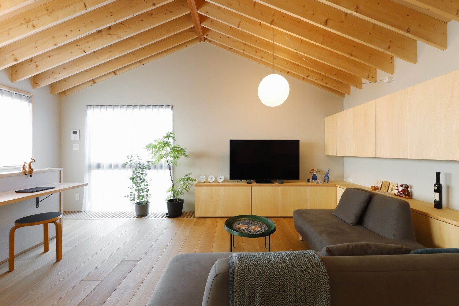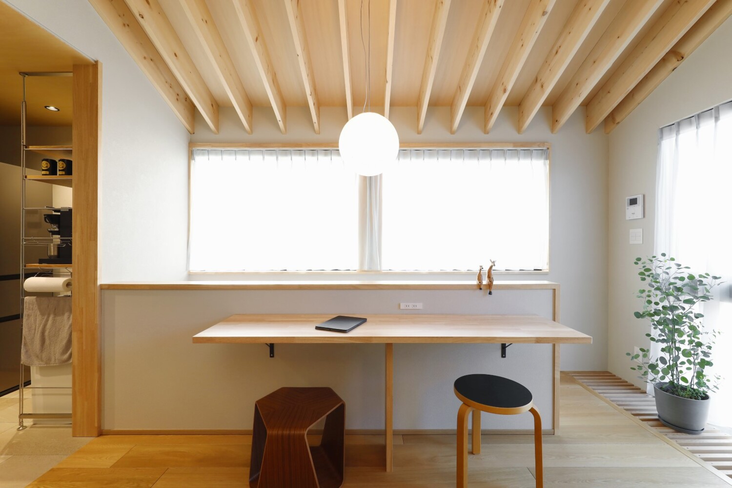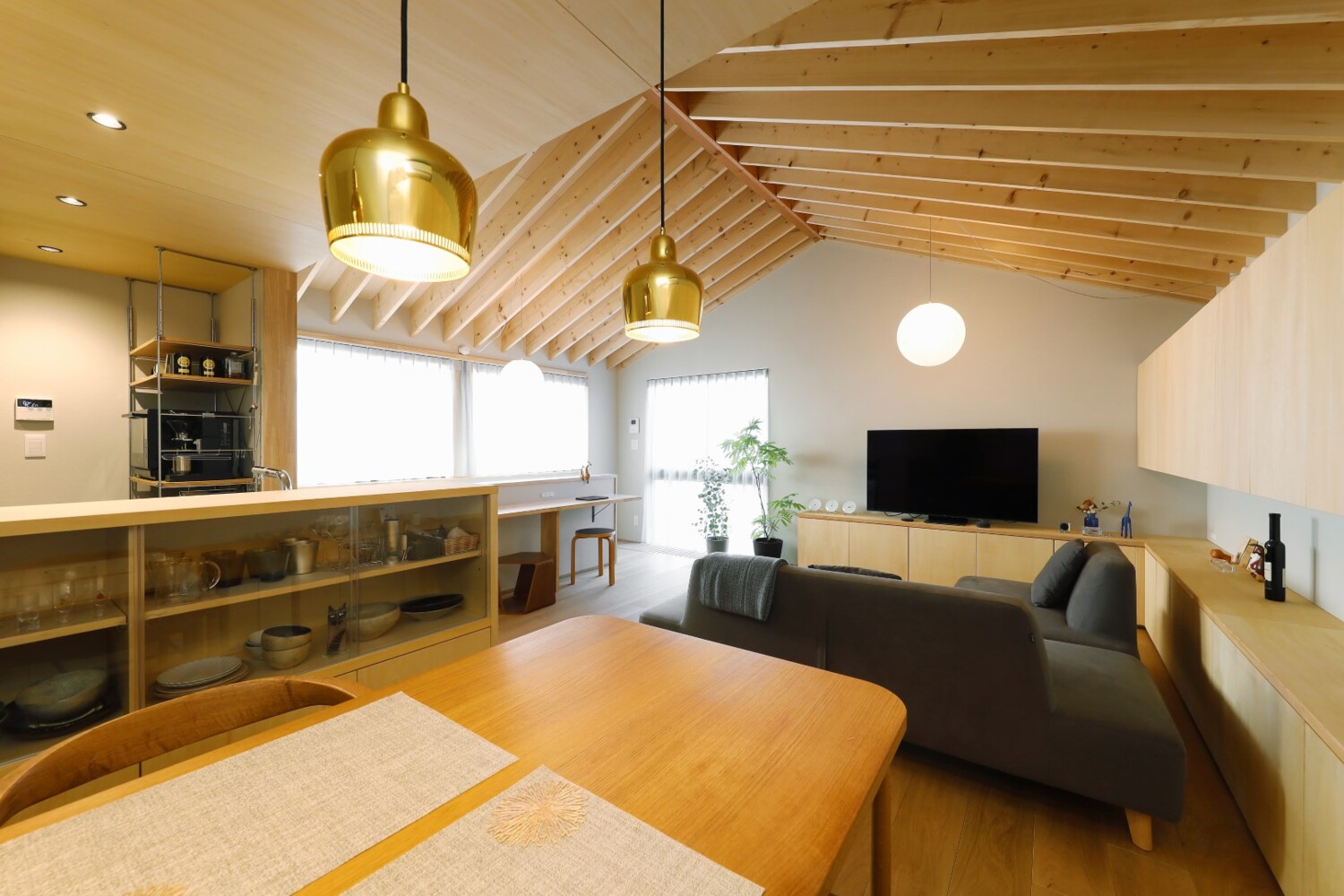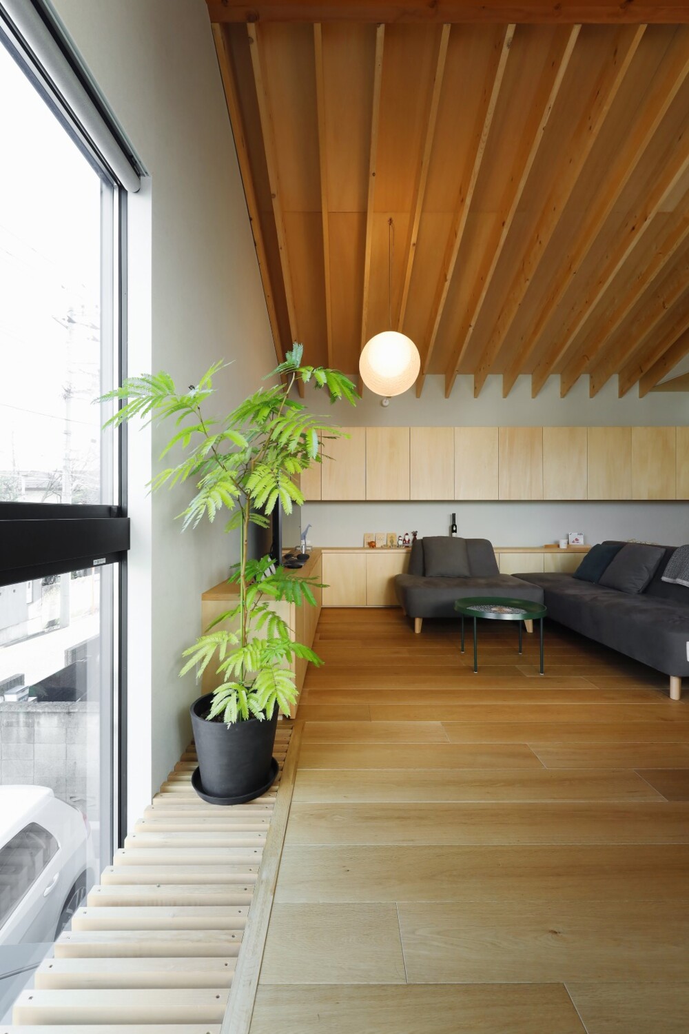 ホーム 施工事例 全ての写真 すべて 木と暮らす三角屋根の家 木と暮らす三角屋根の家 武蔵野市の家 N様邸 全ての写真|すべて 窓枠のラインなど細部にまでこだわり、シンプルにまとまられた外観。 とてもスタイリッシュな仕上がりになりました。画像のみを表示全 15 枚中 1 枚目を表示Next ≫ 画像のみを表示全 15 枚中 2 枚目を表示≪ Prev|Next ≫ 正面の壁は有孔ボードで仕上げ、好きな場所に好きなものを掛けられる仕様に。 スノコ敷きの吹き抜けから光が落ちてくる設計。画像のみを表示全 15 枚中 3 枚目を表示≪ Prev|Next ≫ 横幅をゆったりと確保し、造作のカウンターとコンパクトな手洗を設置しています。 壁排水にすることで、スッキリとした印象をもたせてくれます。 画像のみを表示全 15 枚中 4 枚目を表示≪ Prev|Next ≫ 洋室はオープンの収納を設けています。 アクセントクロスと建具の色味もよくマッチしています。画像のみを表示全 15 枚中 5 枚目を表示≪ Prev|Next ≫ 縦すべりの窓とFIXを組み合わせ、横幅目一杯に窓を設置しています。画像のみを表示全 15 枚中 6 枚目を表示≪ Prev|Next ≫ こちらは造作の洗面台。 グレー×木のスタイリッシュな洗面に仕上がりました。 画像のみを表示全 15 枚中 7 枚目を表示≪ Prev|Next ≫ LIXILのラフィス。 天井までのハイドアで、空間をより広く見せてくれます。画像のみを表示全 15 枚中 8 枚目を表示≪ Prev|Next ≫ 階段は、巾木や側板をなくし、シンプルに仕上げています。 画像のみを表示全 15 枚中 9 枚目を表示≪ Prev|Next ≫ 14.4帖のLDK。 天井の木表しの化粧登り梁はお施主様のこだわりポイント。 キッチン・ダイニング側の天井はシナ合板を貼っており、木質を多用することで温かみのある雰囲気にしています。画像のみを表示全 15 枚中 10 枚目を表示≪ Prev|Next ≫ ダイニング側からの眺め。 左側にある食器棚も造作です。 できるだけシンプルに仕上がるよう、取手など細部にまでこだわっています。 画像のみを表示全 15 枚中 11 枚目を表示≪ Prev|Next ≫ 壁一面に設置してある収納も、全て造作です。 無塗装のものをお引渡し後お施主様自らDIYで塗装した愛着のあるアイテムです。 画像のみを表示全 15 枚中 12 枚目を表示≪ Prev|Next ≫ 小さなスノコ状の吹抜けを介して、1階の玄関と繋がる縦長の窓を設けています。 縦の広がりとともにLDKだけでなく玄関にもプライバシーを守りながら光を取り込める計画に。 それと同時に、スノコの小口が外観上のアクセントとしても働くようにデザインされています。 画像のみを表示全 15 枚中 13 枚目を表示≪ Prev|Next ≫ タカラスタンダードのシステムキッチン。 取手などの凹凸が最小限になるよう、J形状の取手にした点もこだわりポイント。 床は汚れが気にならないようフロアタイル仕上げにしました。画像のみを表示全 15 枚中 14 枚目を表示≪ Prev|Next ≫ リビングの脇には造作のカウンターを設置しています。 ちょっとした作業スペースとして、荷物置きとして大活躍です。画像のみを表示全 15 枚中 15 枚目を表示≪ Prev 工 法:木造軸組構法 延床面積:62.34㎡(18.85坪) 本体価格:1,630万円 別途費用: 500万円 設計費用: 85万円 外構費用: 75万円 合 計:2,290万円 ※表示は全て税込です。 こちらのお住まいが完成するまでの建築レポートはこちら ▽▼もっと事例が見たい方におすすめ▽▼ ホームページには公開されていない写真や間取りを多数掲載!実例集や家づくりについての小冊子、ニュースレターなどがセットになった人気のカタログセット無料プレゼント実施中♪ ▼▼無理な勧誘は行っておりません。お気軽にご参加ください▼▼ ▼▼大好評!オンライン相談も受付中▼▼ 一覧へ戻る 全ての写真 タイプ別 広さ別(延床面積) パーツ別 テイスト別 SUUMO掲載中 すべて SE構法 狭小地・変形地に建てた家 2階建て 3階建て 東京ゼロエミ住宅 二世帯・共同住宅 リフォーム・リノベーション 20坪未満 20坪以上25坪未満 25坪以上30坪未満 30坪以上 すべて キッチン リビング 室内ドア・建具 洗面・トイレ 玄関まわり 階段 フローリング 外観 和室・畳コーナー シンプルモダン シンプルナチュラル スタイリッシュモダン インダストリアル 和風モダン すべて