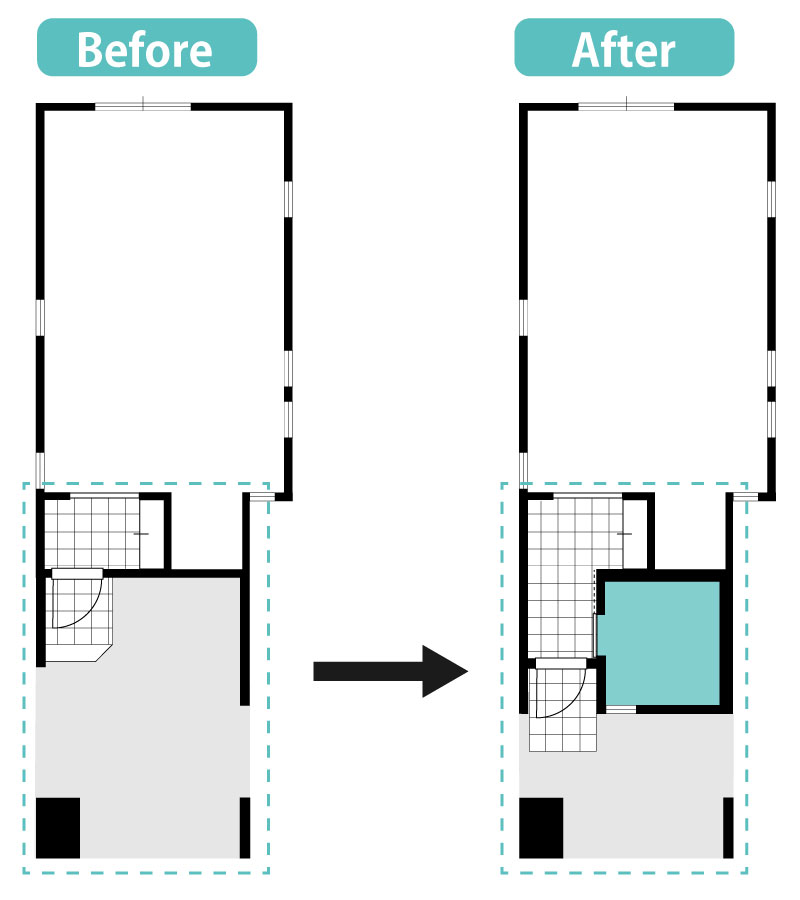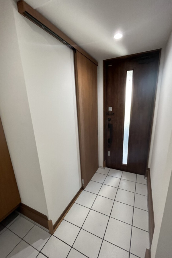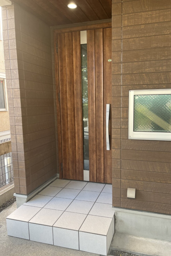 増築部分を繋げるために、玄関部分を一度解体して位置を調節しました。