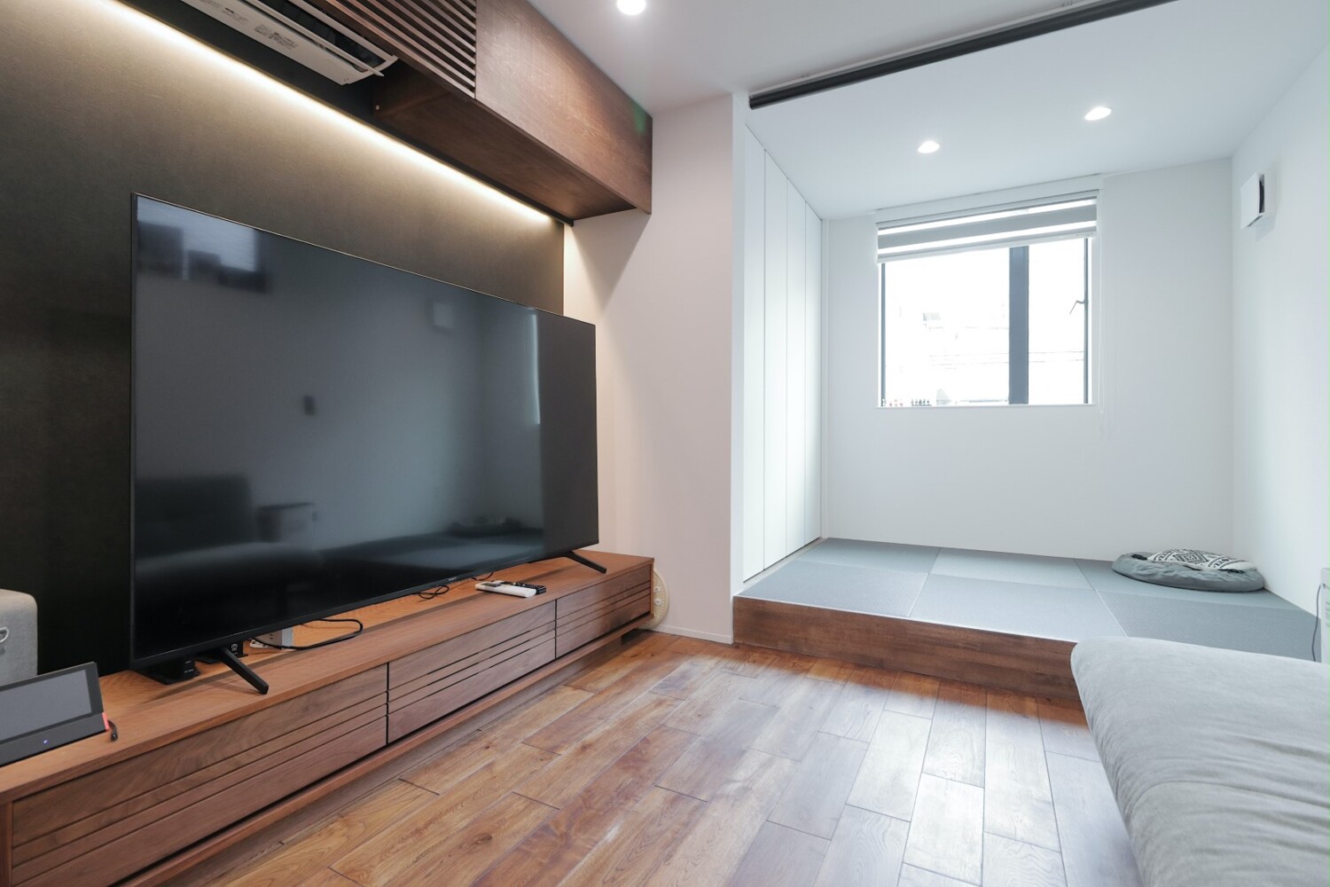ホーム 施工事例 タイプ別 3階建て SE構法で建てるビルトインガレージ・間口3mの狭小住宅 SE構法で建てるビルトインガレージ・間口3mの狭小住宅 渋谷区の家 O様邸 タイプ別|3階建て 建物の間口は約3m。 外壁のメンテナンスを考慮して、正面はジョリパット、他3面はメンテナンスフリーの外壁を使用しています。 狭小住宅でもSE構法を利用して、ビルトインを実現させています。画像のみを表示全 12 枚中 1 枚目を表示Next ≫ 終わった洗濯物が片付けやすようにファミリークロークは洗面室内に配置。 ドアを付けると圧迫感が出てしまうので、目隠し用にロールスクリーンを設置しました。画像のみを表示全 12 枚中 2 枚目を表示≪ Prev|Next ≫ 洗濯機の左側のスペースは洗剤などを入れる収納として有効活用しています。 画像のみを表示全 12 枚中 3 枚目を表示≪ Prev|Next ≫ LDKは約17帖。 圧迫感が出ないように間仕切りをなくしています。画像のみを表示全 12 枚中 4 枚目を表示≪ Prev|Next ≫ 畳コーナーにはリビングと空間を分けるためのロールスクリーンを設置しています。画像のみを表示全 12 枚中 5 枚目を表示≪ Prev|Next ≫ インテリア性を高めるために、テレビの上に間接照明を付けました。 ダークカラーのクロス(サンゲツ/FE76776)により間接照明が引き立ちます。画像のみを表示全 12 枚中 6 枚目を表示≪ Prev|Next ≫ LDKのエアコンはルーバーでおしゃれに隠しています。画像のみを表示全 12 枚中 7 枚目を表示≪ Prev|Next ≫ 2階LDKの入口ドアにはラフィス/クリアタイプを使用して、圧迫感なく空間を仕切ることができています。 画像のみを表示全 12 枚中 8 枚目を表示≪ Prev|Next ≫ キッチンはタカラスタンダード/オフェリアを採用。 リビングから手元が見えないように腰壁を付けました。画像のみを表示全 12 枚中 9 枚目を表示≪ Prev|Next ≫ カップボードはゴミ箱を収納するため、オープンスペースを設けました。画像のみを表示全 12 枚中 10 枚目を表示≪ Prev|Next ≫ 約9.5帖の寝室。メイン採光は北ですが、東西にも窓を配置し明るい空間にしました。 小屋裏を生かして上部は収納スペースとなっています。画像のみを表示全 12 枚中 11 枚目を表示≪ Prev|Next ≫ 子ども部屋は約4帖とコンパクトに。その分クローゼットを大きめに取っています。画像のみを表示全 12 枚中 12 枚目を表示≪ Prev 工 法:木造軸組構法 延床面積:81.59㎡(24.98坪) 本体価格:2,550万円 別途費用: 993万円 設計費用: 142万円 合 計:3,685万円 ※表示は全て税込です※外構費別途 こちらのお住まいが完成するまでの建築レポートはこちら ▽▼もっと事例が見たい方におすすめ▽▼ ホームページには公開されていない写真や間取りを多数掲載!実例集や家づくりについての小冊子、ニュースレターなどがセットになった人気のカタログセット無料プレゼント実施中♪ ▼▼無理な勧誘は行っておりません。お気軽にご参加ください▼▼ ▼▼大好評!オンライン相談も受付中▼▼ 一覧へ戻る 全ての写真 タイプ別 広さ別(延床面積) パーツ別 テイスト別 SUUMO掲載中 すべて SE構法 狭小地・変形地に建てた家 2階建て 3階建て 東京ゼロエミ住宅 二世帯・共同住宅 リフォーム・リノベーション 20坪未満 20坪以上25坪未満 25坪以上30坪未満 30坪以上 すべて キッチン リビング 室内ドア・建具 洗面・トイレ 玄関まわり 階段 フローリング 外観 和室・畳コーナー シンプルモダン シンプルナチュラル スタイリッシュモダン インダストリアル 和風モダン すべて