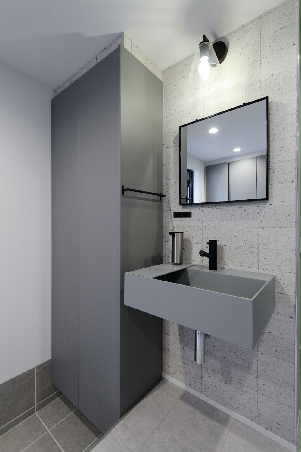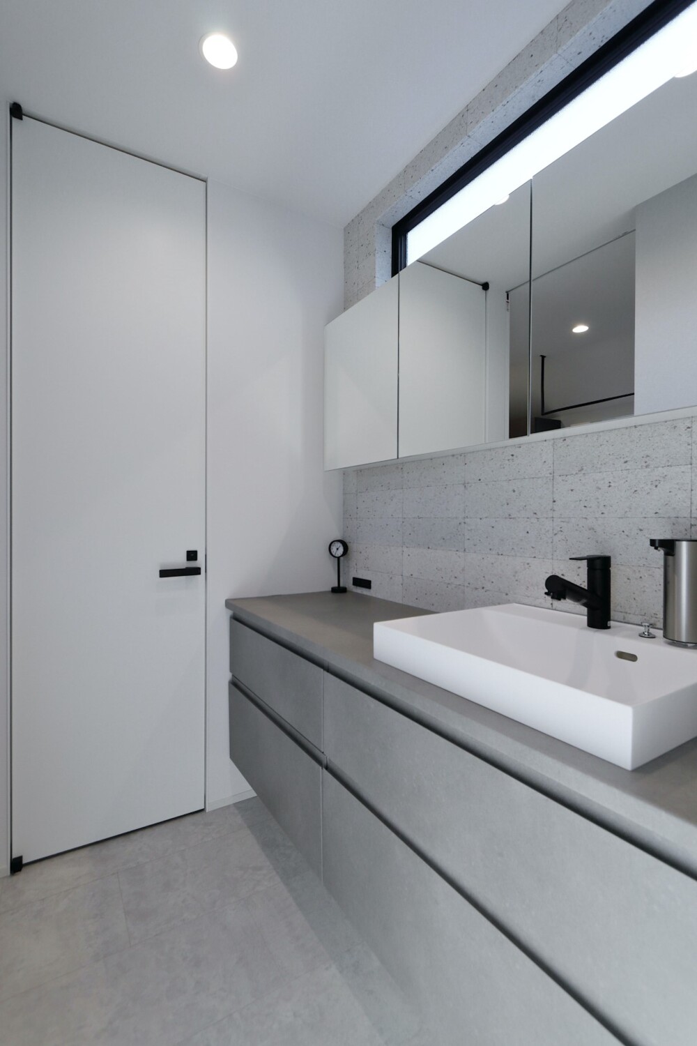 ホーム 施工事例 全ての写真 すべて グレー収納が映えるすっきりスタイリッシュな暮らし グレー収納が映えるすっきりスタイリッシュな暮らし 西東京市の家 I様邸 全ての写真|すべて 外観は、窓少ないシンプルな見た目を重視しました。 外壁:アイカ エンシェントブリック T3005画像のみを表示全 19 枚中 1 枚目を表示Next ≫ ご主人の仕事部屋を完全独立させるため、もう一ヶ所玄関ドアを設けました。画像のみを表示全 19 枚中 2 枚目を表示≪ Prev|Next ≫ 3.2帖の仕事部屋。 居室と完全に独立させることで、オンオフの切り替えが出来るようにしています。画像のみを表示全 19 枚中 3 枚目を表示≪ Prev|Next ≫ 玄関ホールの上がり框をブラックにすることで、グレー系で統一された空間にアクセントを加えました。 画像のみを表示全 19 枚中 4 枚目を表示≪ Prev|Next ≫ スタイリッシュな手洗いコーナーはミラタップのレッタンゴロ洗面。 ミラーはお施主様のご支給です。 背面にはモダンな印象の石目調クロスLL7020を採用しました。画像のみを表示全 19 枚中 5 枚目を表示≪ Prev|Next ≫ 玄関入って左には大容量のシューズクローゼット。画像のみを表示全 19 枚中 6 枚目を表示≪ Prev|Next ≫ 4.4帖の子ども部屋にはリリカラのアクセントクロスLV2113を採用画像のみを表示全 19 枚中 7 枚目を表示≪ Prev|Next ≫ こちらの子ども部屋には爽やかな色のアクセントクロスRE55033。画像のみを表示全 19 枚中 8 枚目を表示≪ Prev|Next ≫ 1Fトイレのアクセントクロスはくすんだカラーがモダンな印象のサンゲツ/RE55035を採用。 子ども部屋が近くにあるということで明るい色をご選択されました。 ペーパーホルダーやお掃除用具はブラックでまとめています。画像のみを表示全 19 枚中 9 枚目を表示≪ Prev|Next ≫ 約20帖のLDK。 床は石目柄がスタイリッシュなLIXILのラフモルタル調。 リビング部分は吹き抜けで開放感のある空間になっています。 画像のみを表示全 19 枚中 10 枚目を表示≪ Prev|Next ≫ ペンダントライトのブラケットを隠すため、天井を切り欠きしています。画像のみを表示全 19 枚中 11 枚目を表示≪ Prev|Next ≫ 天井には電球色ダウンライトと間接照明を設け、穏やかな雰囲気を演出しました。画像のみを表示全 19 枚中 12 枚目を表示≪ Prev|Next ≫ ブラックのスタイリッシュな二列型キッチンはパナソニックのLクラス。 重厚感もありつつシンプルにまとまっています。画像のみを表示全 19 枚中 13 枚目を表示≪ Prev|Next ≫ ガス側はカウンターチェアを設け、ダイニングテーブルとして活用します。画像のみを表示全 19 枚中 14 枚目を表示≪ Prev|Next ≫ キッチン収納内の棚はIKEAで揃えたお施主様のご支給品。画像のみを表示全 19 枚中 15 枚目を表示≪ Prev|Next ≫ アイカ工業のスマートサニタリーとミラタップのスミスを組み合わせた造作洗面化粧台。 幅1650mmとゆとりのある広さで、忙しい朝でも家族で並んで快適に身支度が出来ます。 画像のみを表示全 19 枚中 16 枚目を表示≪ Prev|Next ≫ 画像のみを表示全 19 枚中 17 枚目を表示≪ Prev|Next ≫ ランドリースペースには乾太くんを設置。 乾太くん置き場はお施主様がDIYしました。画像のみを表示全 19 枚中 18 枚目を表示≪ Prev|Next ≫ お風呂はタカラスタンダードのリラクシア。 お掃除がしやすいようにお風呂はカウンターやミラーを無くしました。画像のみを表示全 19 枚中 19 枚目を表示≪ Prev 工 法:木造在来工法 延床面積:102.01㎡(30.85坪) 本体価格:2,469万円 別途費用: 703万円 設計費用: 136万円 外構費用: 132万円 合 計:3,440万円 ※表示は全て税込です こちらのお住まいが完成するまでの建築レポートはこちら ▽▼もっと事例が見たい方におすすめ▽▼ ホームページには公開されていない写真や間取りを多数掲載!実例集や家づくりについての小冊子、ニュースレターなどがセットになった人気のカタログセット無料プレゼント実施中♪ ▼▼無理な勧誘は行っておりません。お気軽にご参加ください▼▼ ▼▼大好評!オンライン相談も受付中▼▼ 一覧へ戻る 全ての写真 タイプ別 広さ別(延床面積) パーツ別 テイスト別 SUUMO掲載中 すべて SE構法 狭小地・変形地に建てた家 2階建て 3階建て 東京ゼロエミ住宅 二世帯・共同住宅 リフォーム・リノベーション 20坪未満 20坪以上25坪未満 25坪以上30坪未満 30坪以上 すべて キッチン リビング 室内ドア・建具 洗面・トイレ 玄関まわり 階段 フローリング 外観 和室・畳コーナー シンプルモダン シンプルナチュラル スタイリッシュモダン インダストリアル 和風モダン すべて