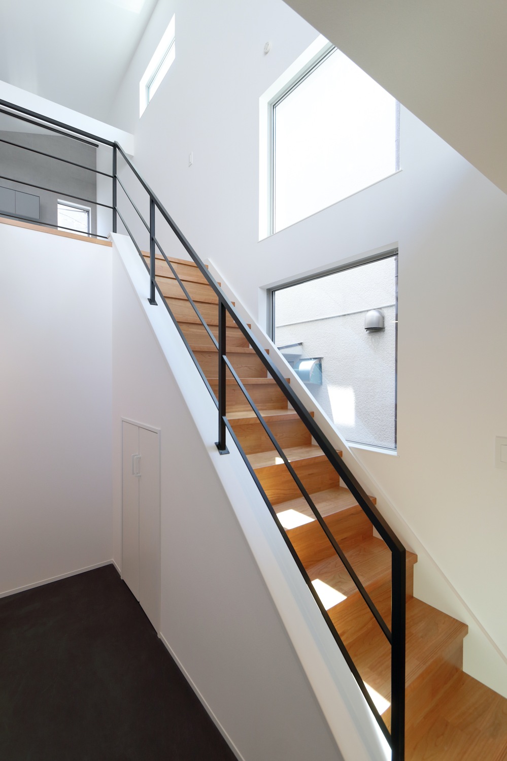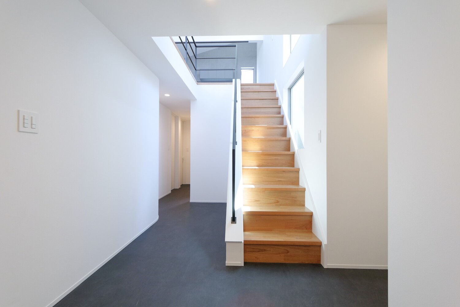 ホーム 施工事例 全ての写真 すべて L字型の土地を生かしたシンプルで開放的な家 L字型の土地を生かしたシンプルで開放的な家 北区の家 S様邸 全ての写真|すべて L型の土地に合わせ、無駄の出ないようにプランを作成。 落ち着きのあるシンプルな外観に仕上げました。 外壁はアイカ工業ジョリパット吹付のT5403。画像のみを表示全 20 枚中 1 枚目を表示Next ≫ 玄関の方向が道路に面しており、扉を開けると道路から家の中が丸見えになってしまうので目隠し壁を設けました。画像のみを表示全 20 枚中 2 枚目を表示≪ Prev|Next ≫ 玄関ドアはLIXILジエスタⅡのポリッシュシルバー。 外壁やポーチの色と合わせて統一感を出しています。画像のみを表示全 20 枚中 3 枚目を表示≪ Prev|Next ≫ 玄関土間と立上り部分には、グレイスランドGRL-5を採用。画像のみを表示全 20 枚中 4 枚目を表示≪ Prev|Next ≫ 床はフローリングではなくフロアタイルにして、モダンな雰囲気になりました。 階段は朝日ウッドテックのブラックチェリーを採用。 ■フロアタイル:IS-1089 ブラックスレート画像のみを表示全 20 枚中 5 枚目を表示≪ Prev|Next ≫ モノトーンでまとめたトイレ。床はホールと同色のフロアタイルを採用。 目地なしですっきりと仕上げました。画像のみを表示全 20 枚中 6 枚目を表示≪ Prev|Next ≫ 壁をアールにすることで、無理なく通路幅を確保しています。 洗練された雰囲気をプラスでき、モダンで上品な印象になりました。画像のみを表示全 20 枚中 7 枚目を表示≪ Prev|Next ≫ こちらの個室は将来二部屋に出来るようにしています。 画像のみを表示全 20 枚中 8 枚目を表示≪ Prev|Next ≫ 洗面はサンワカンパニーの商品を組み合わせています。 浮かせることでお掃除が楽になり、見た目もスッキリします。画像のみを表示全 20 枚中 9 枚目を表示≪ Prev|Next ≫ お風呂はタカラスタンダードのリラクシア。 お掃除する事を考え、ミラーとカウンターをなくしました。画像のみを表示全 20 枚中 10 枚目を表示≪ Prev|Next ≫ 階段下スペースには、収納を設けました。 南側の2つのFIX窓からはたっぷりと光が差し込みます。画像のみを表示全 20 枚中 11 枚目を表示≪ Prev|Next ≫ LDKは約26畳。 グレーのキッチンとアイアン手すりが空間にメリハリを出してくれています。画像のみを表示全 20 枚中 12 枚目を表示≪ Prev|Next ≫ 梁部分にはダクトレールを設け、レール上であれば対応した照明器具が取り付け可能。 雰囲気や好みの明るさによって照明器具を変更することもできます。画像のみを表示全 20 枚中 13 枚目を表示≪ Prev|Next ≫ ワークトップはゆったり使える奥行き100cm。 シンク下はオープンにしてゴミ箱を収納できるので、リビング側からゴミ箱が見えません。 画像のみを表示全 20 枚中 14 枚目を表示≪ Prev|Next ≫ キッチンはタカラスタンダードオフェリアの二列型。 床はお手入れのしやすいフロアタイルに。1階ホールと同色のIS1089を採用し、ダークトーンでまとめました。画像のみを表示全 20 枚中 15 枚目を表示≪ Prev|Next ≫ コンロ側は3.6mのワイドサイズ。お料理の幅が広がるビルトイン電気オーブンを組み込んでいます。 コンセントの位置は調理家電の配置に合わせて調整しました。画像のみを表示全 20 枚中 16 枚目を表示≪ Prev|Next ≫ 吊戸棚のみサンワカンパニーのピッタラを採用しています。 正面に窓を設けたことにより、手元が明るくなり作業がしやすくなります。画像のみを表示全 20 枚中 17 枚目を表示≪ Prev|Next ≫ LDKにはドアを設けず、階段横の窓と吹き抜けによって明るく開放的な空間にしています。画像のみを表示全 20 枚中 18 枚目を表示≪ Prev|Next ≫ リビング奥にある約5畳半の畳部屋。 吊り収納にすることで足元のFIX窓からの光が差し込みます。 画像のみを表示全 20 枚中 19 枚目を表示≪ Prev|Next ≫ 約5畳ほどのバルコニーは2mある外壁によりプライバシーを確保しました。 圧迫感を抑えるため、外壁とは異なる薄いグレー色(T3401)で仕上げました。 画像のみを表示全 20 枚中 20 枚目を表示≪ Prev 工 法:木造軸組構法 延床面積:133.26㎡(40.31坪) 本体価格:2,967万円 別途費用: 733万円 設計費用: 150万円 外構費用: 153万円 合 計:4,003万円 ※表示は全て税込です。 こちらのお住まいが完成するまでの建築レポートはこちら 一覧へ戻る 全ての写真 タイプ別 広さ別(延床面積) パーツ別 テイスト別 SUUMO掲載中 すべて SE構法 狭小地・変形地に建てた家 2階建て 3階建て 東京ゼロエミ住宅 二世帯・共同住宅 リフォーム・リノベーション 20坪未満 20坪以上25坪未満 25坪以上30坪未満 30坪以上 すべて キッチン リビング 室内ドア・建具 洗面・トイレ 玄関まわり 階段 フローリング 外観 和室・畳コーナー シンプルモダン シンプルナチュラル スタイリッシュモダン インダストリアル 和風モダン すべて
